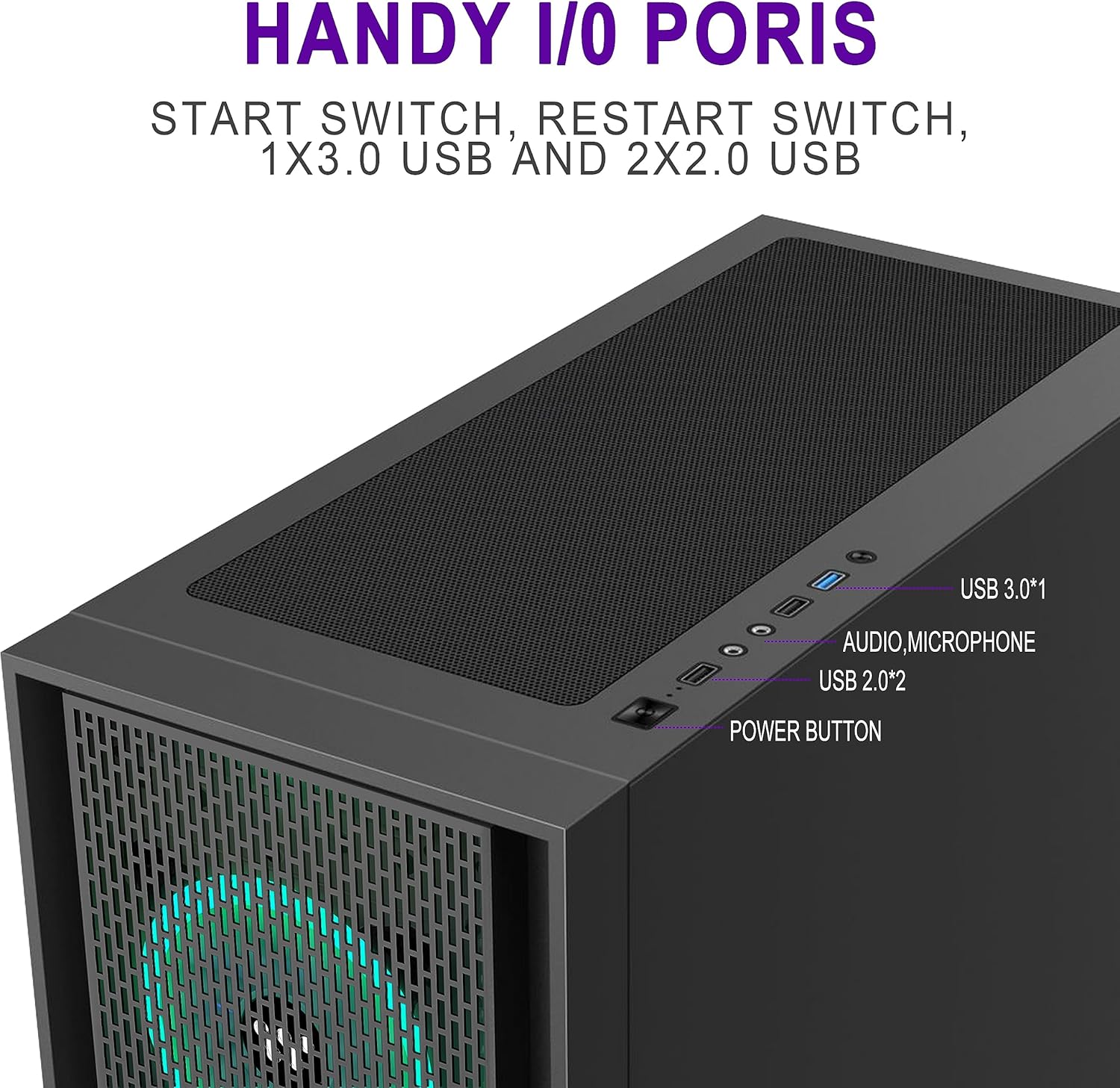 • 7 PWM-ARGB-Lüfter, um Ihr System aufzuhellen: C710 ARGB-PC-Gehäuse mit 7 PWM-ARGB-Lüftern vorinstalliert, Quantität und Qualität sind hervorragend. Dicker Lüfter-Aussenring mit leuchtendem Design, modisch und cool! Mit PWM ARGB-LÜFTERN mit dieser
