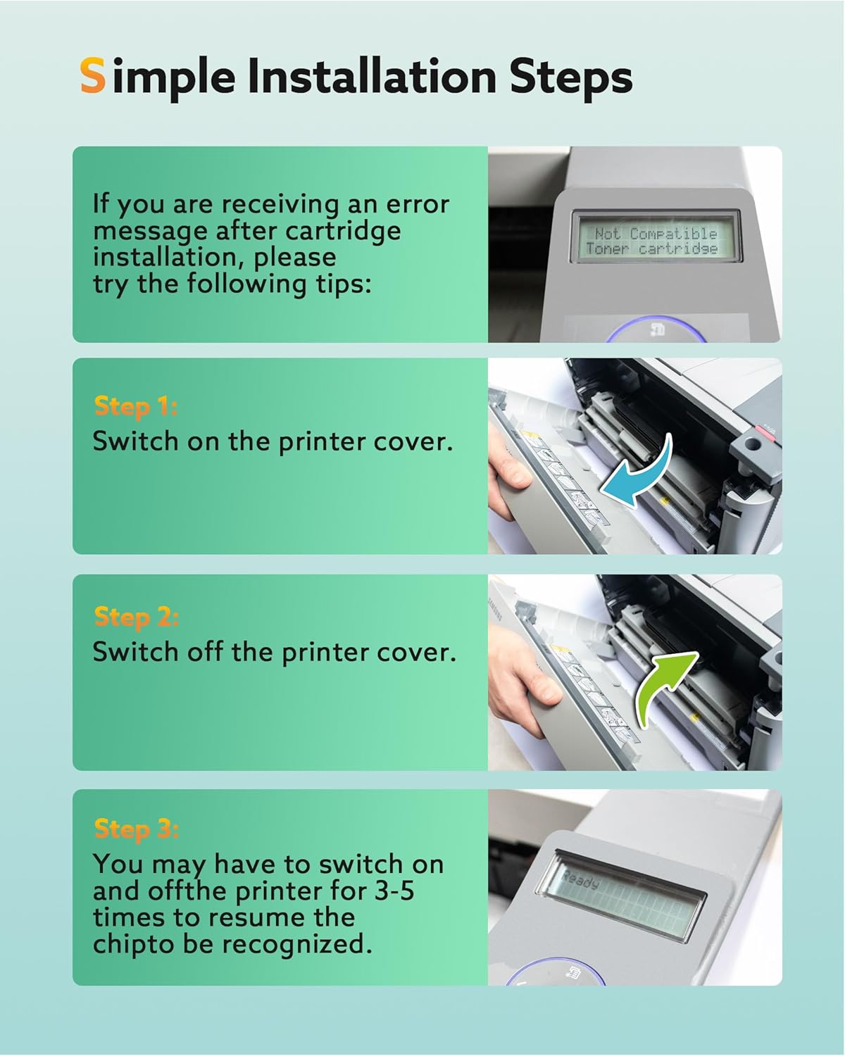 - 2.Seitenausbeute: 1,500 Seiten für CLT-K404S Schwarze Toner, 1,000 Seiten pro CLT-C404S CLT-Y404S CLT-M404S Farbtonerkartusche (bei 5 % Deckung)