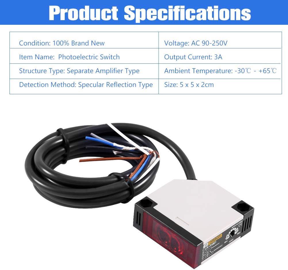 - 【Empfindliche Komponente】 Alle Objekte können reflektiertes Licht erkennen. E3JK-R4M1 AC90-250V Reflexlichtschranke mit fünf Linsen