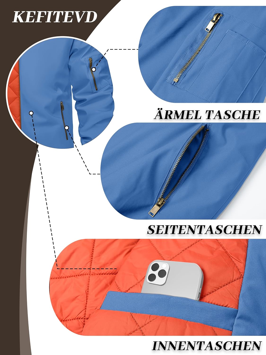 - Retro-Stil: mit typischem Bomberjackenstehkragen, Ärmel-Zippertasche sowie orangem Innenfutter ausgestattet