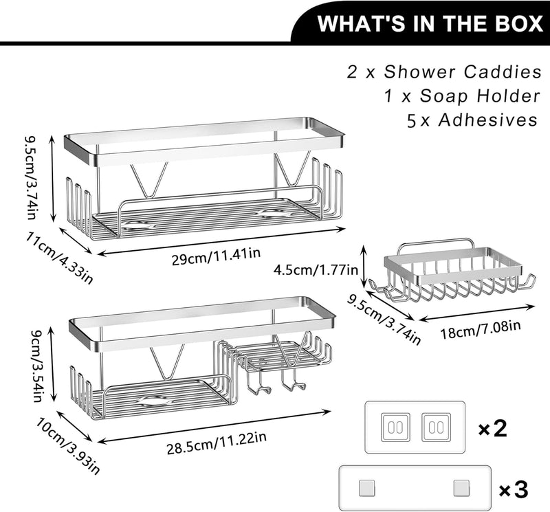 - Was Sie bekommen: Wenn Sie dieses Duschregal-Set kaufen, erhalten Sie 2 Duschkörbe, 1 Seifenhalter, 3 Kleber und einen 24-Stunden-Kundenservice. Wenn Sie irgendwelche Probleme mit den Duschkörben haben, können Sie uns gerne kontaktieren.