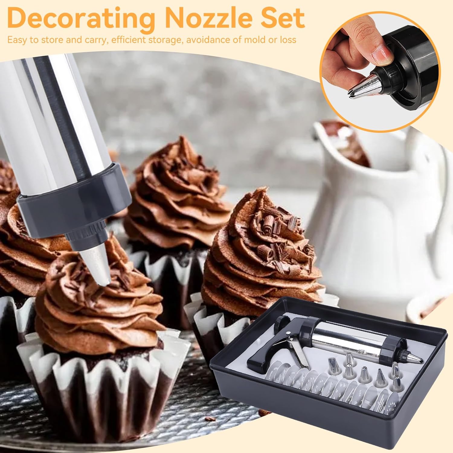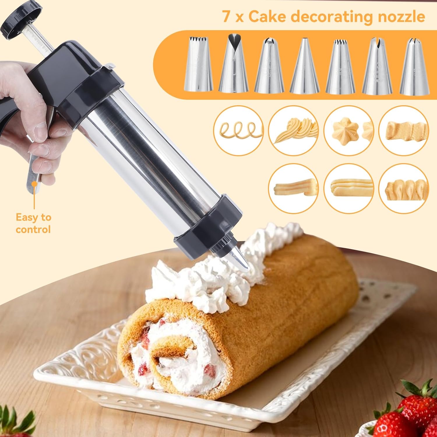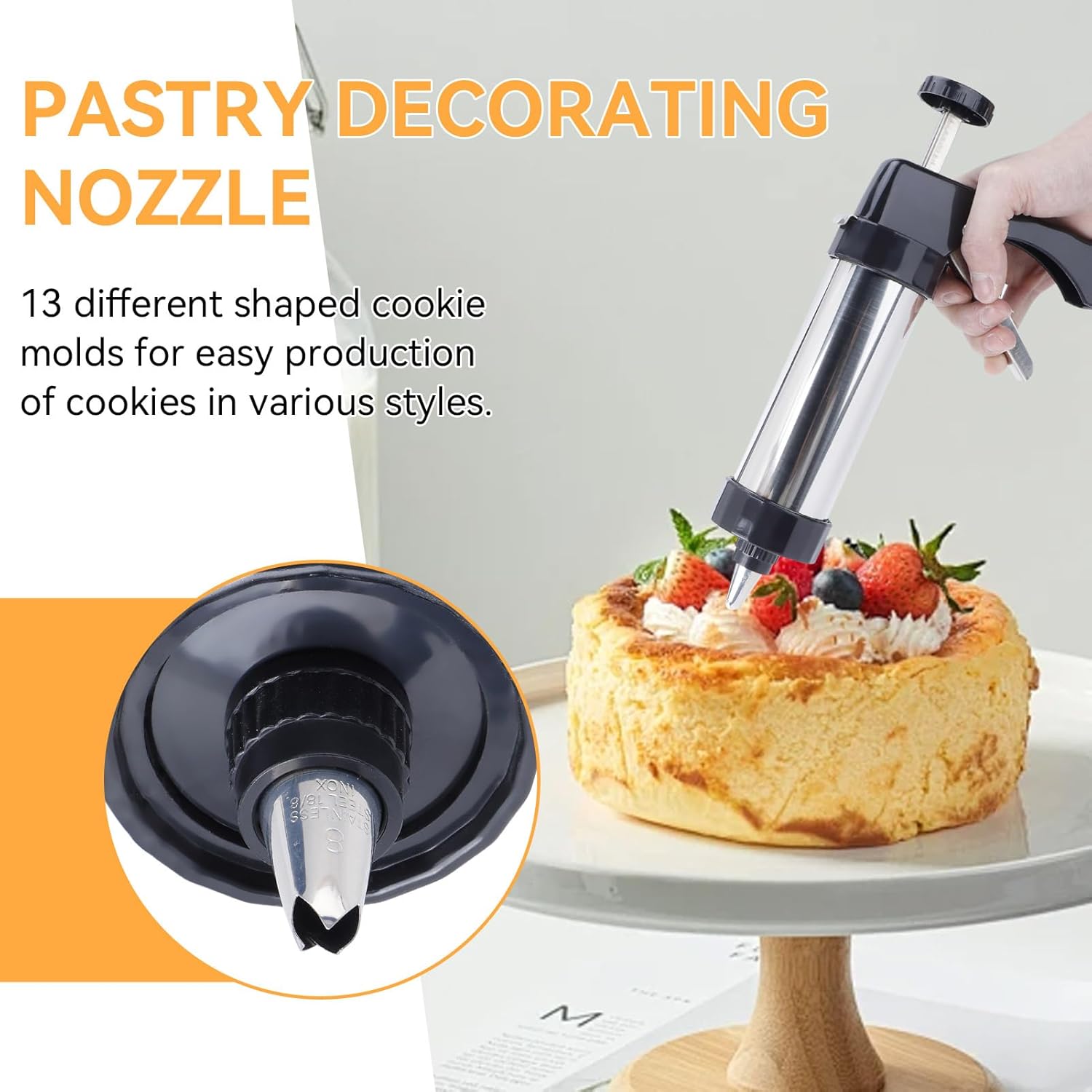 Edelstahl-gebäckpresse, Krapfenspritze Für Marmelade Mit 7 Düsen Und 13 Formen Torten Schablonen Geb