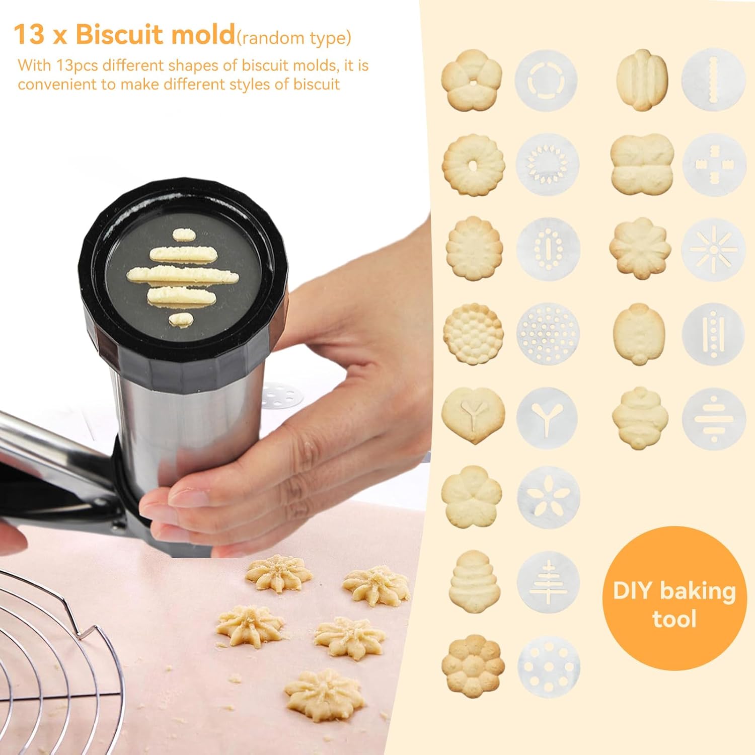 • 7 Düsen & 13 Formen: Mit 13 Stück verschiedenen Formen von Biscui-Formen ist es bequem, verschiedene Arten von Biscui herzustellen. Mit 13 Stück verschiedenen Formen von Biscui-Formen ist es bequem, verschiedene Arten von Biscui herzustellen.