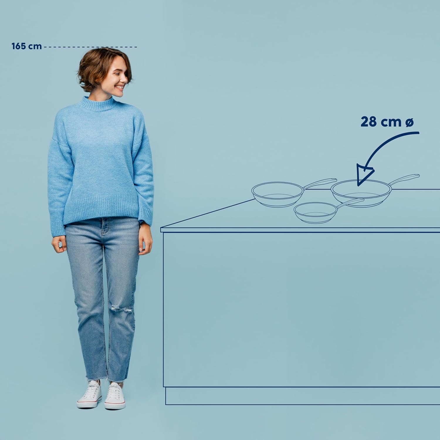 • Klassischer Stil, praktisch in der Handhabung: Elegante Bratpfanne in Glanzoptik mit 28 cm Durchmesser zum Kochen, Überbacken im Ofen oder Servieren