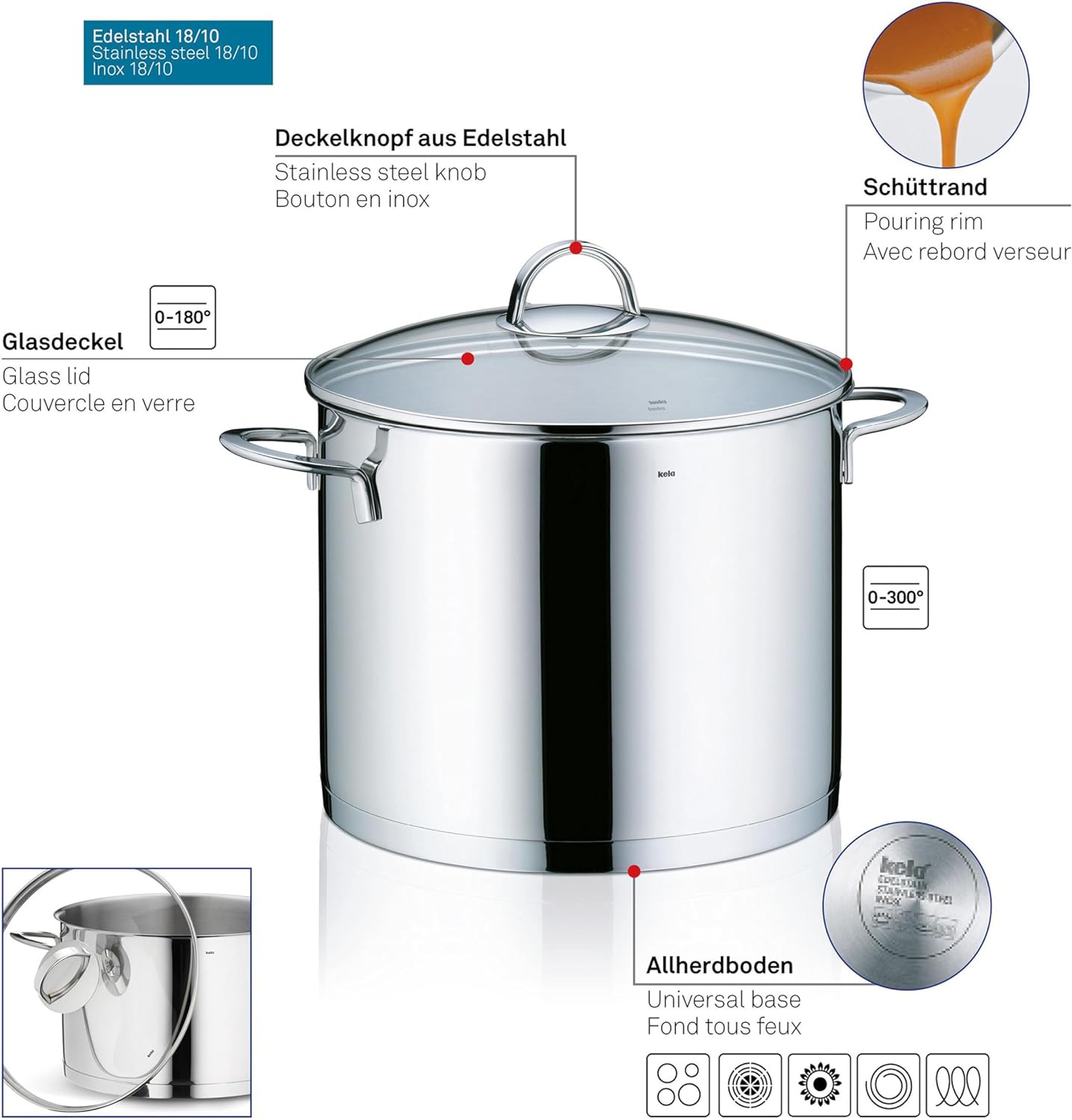 - Lieferumfang: 1 Kela Gemüsetopf, Cailin, 10961, 18/10 Edelstahl, Fassungsvermögen: 9 l, Höhe: 19 cm, Ø: 24 cm