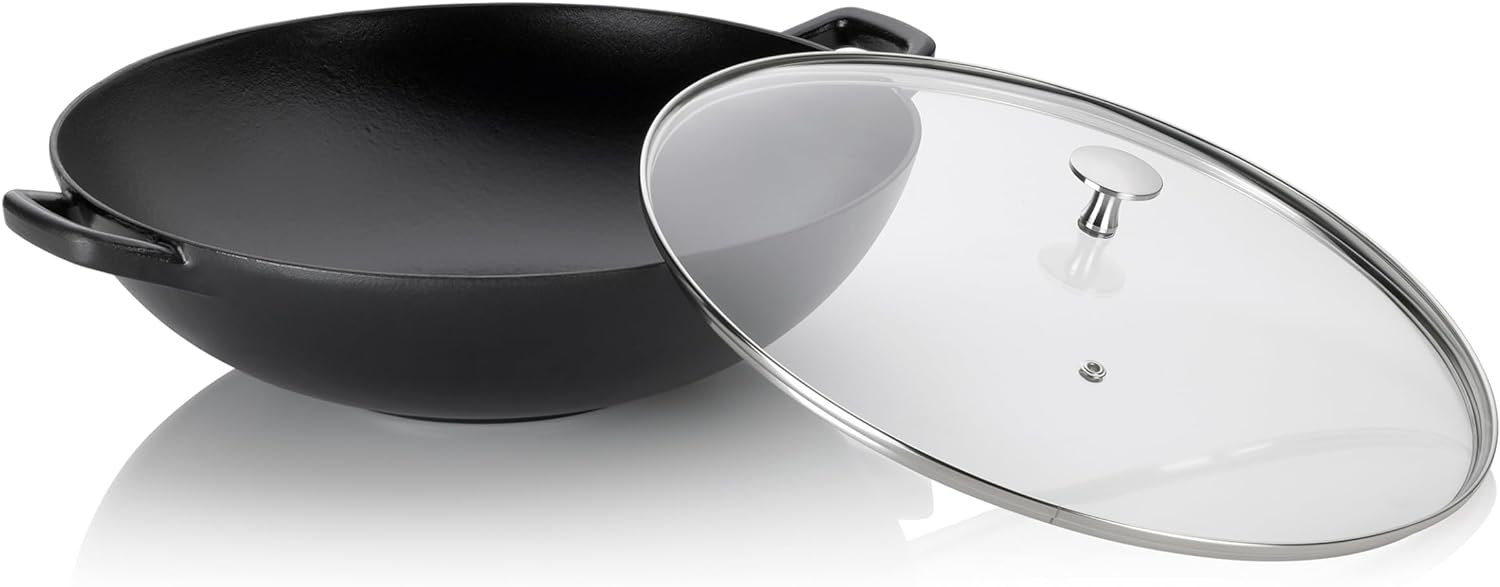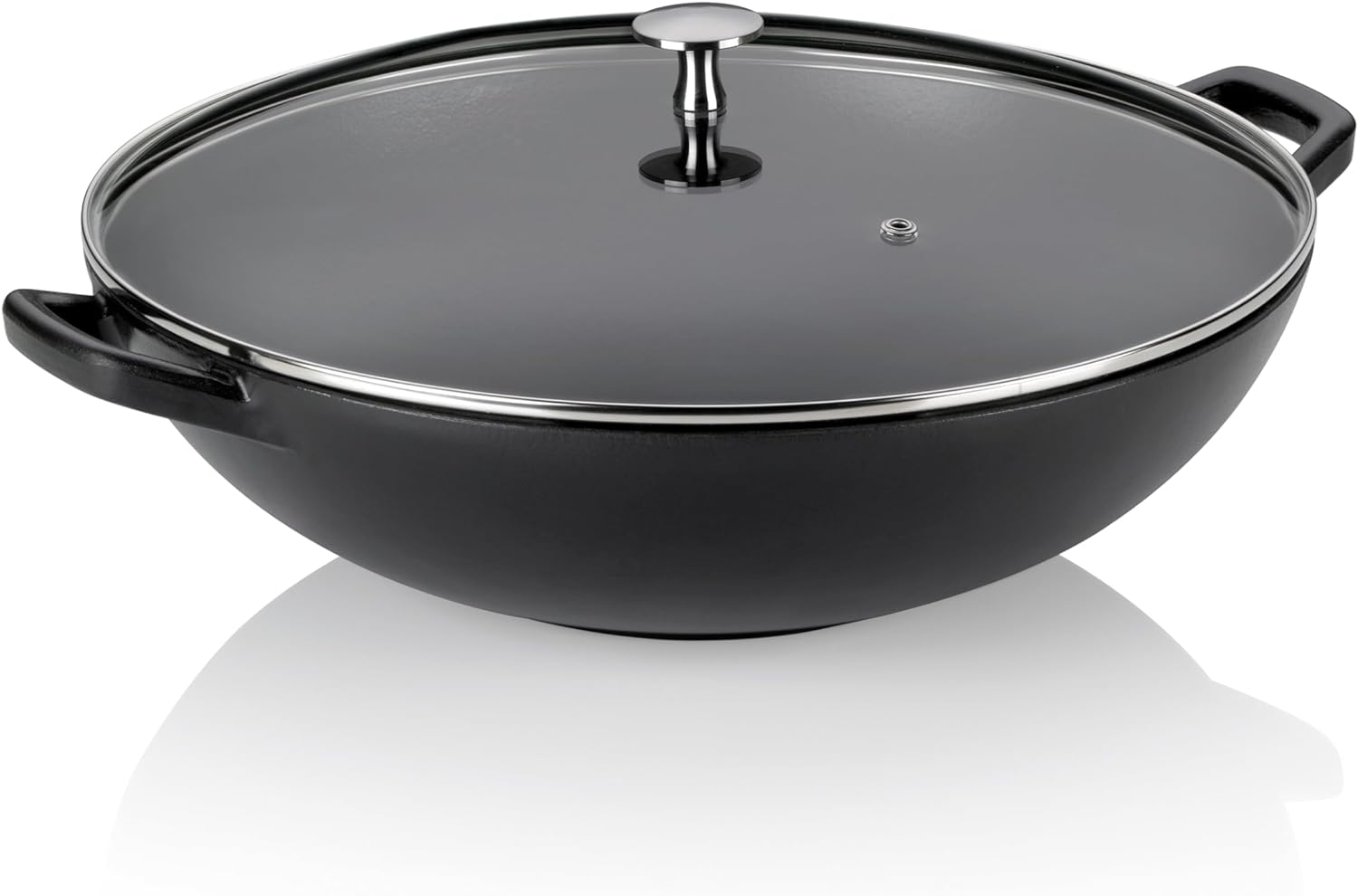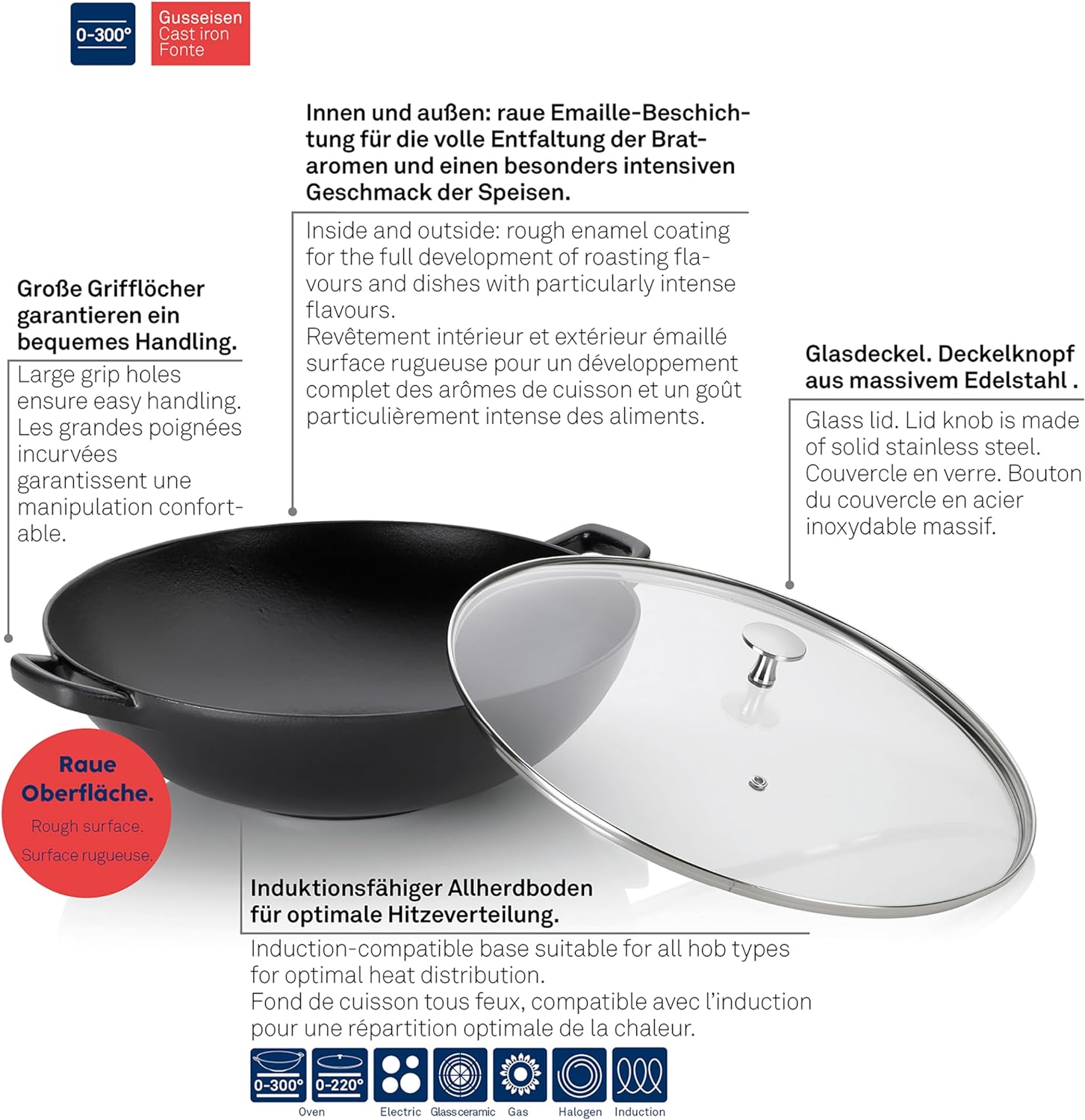 - Zum Garen und Braten, Schmoren, Dämpfen und Frittieren: Wok-Pfanne mit feuerfestem Deckel zur langsamen und gleichmässigen Schmoren von von Speisen bei hoher Temperatur