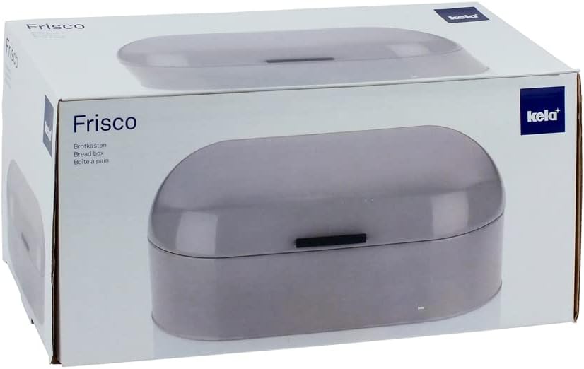 - Lieferumfang: 1 Kela Brotkasten, Frisco 311167, Metall, Masse: 44 x 21,5 cm, Höhe: 22 cm, hellgrau
