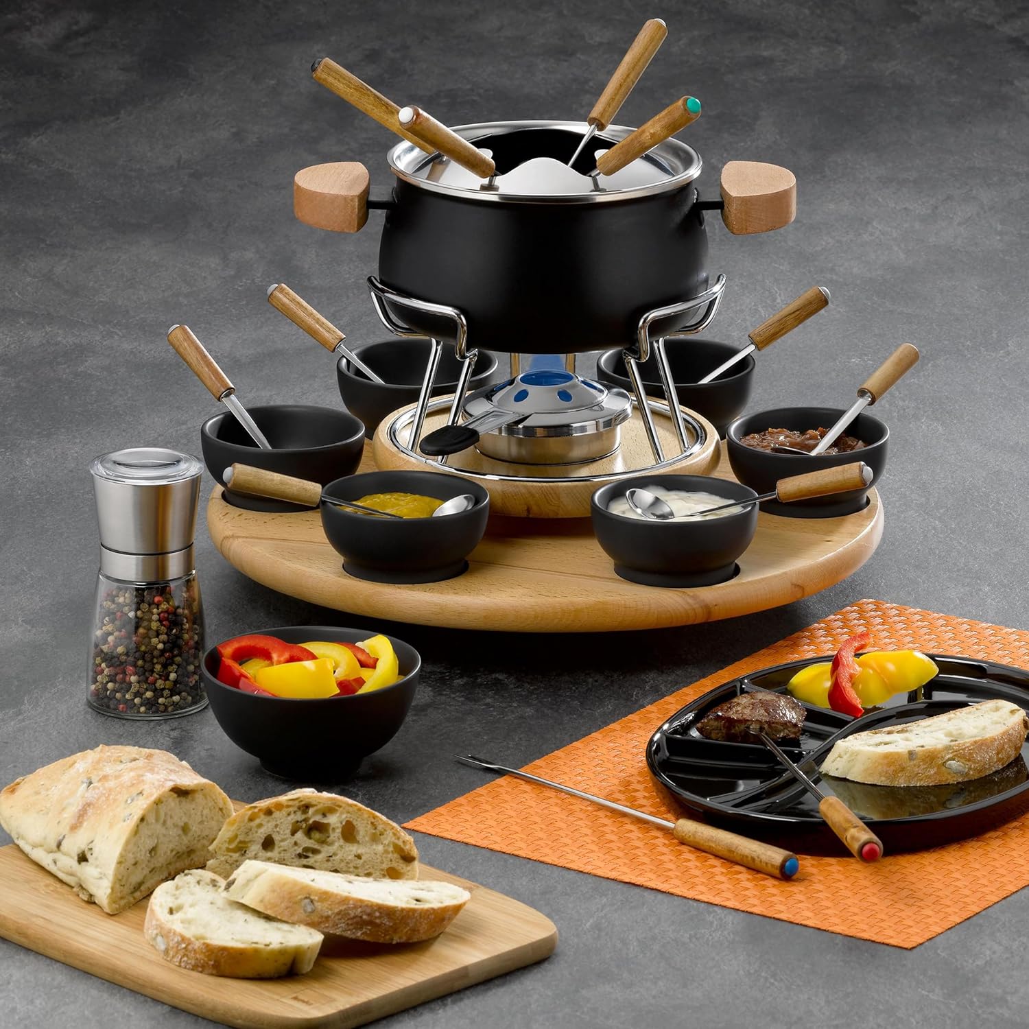 - Genuss und Schweizer Gemütlichkeit an Weihnachten, Silvester oder zwischendurch: Rustikales, drehbares Fleischfonduekarussell im natürlichen Design für einen Abend mit Familie und Freunden in traditioneller Atmosphäre