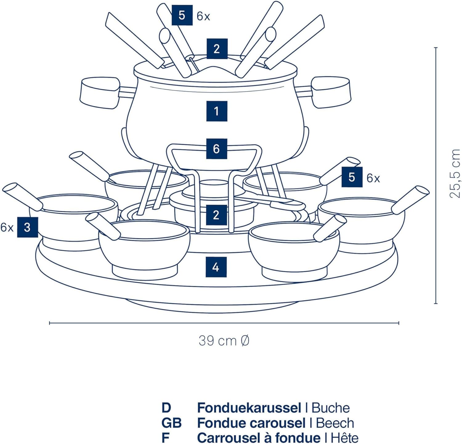 - Lieferumfang: 1 x Kela Fonduekarussell Natura, 61201, Grösse aufgestellt: 25,5 cm, Platte: Ø 39 cm, Inkl. 1 Fonduetopf, 1 Spritzschutz, 1 Rechaud, 1 Fonduekarussell, 6 Keramikschalen, 6 Fondue-Gabeln, 6 Fondue-Löffel, 1 Sicherheitspastenbrenner