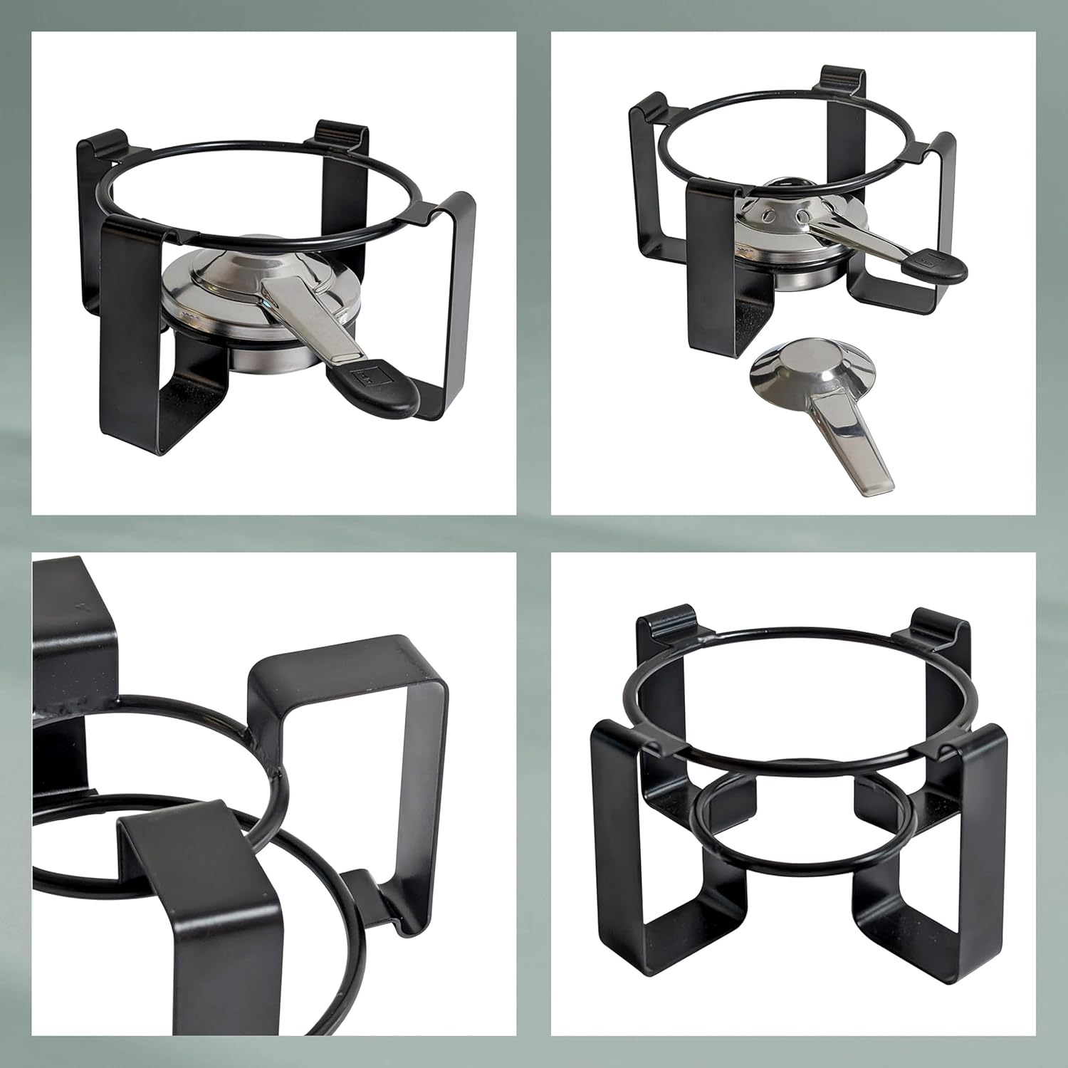 - Zur einfachen Vorbereitung wird Öl/Brühe im Fondue Topf auf dem Herd erhitzt (für alle Herdarten geeignet, auch Induktion) und anschliessend mit einem Brenner warm gehalten, sodass kein Kabel auf dem Tisch stört