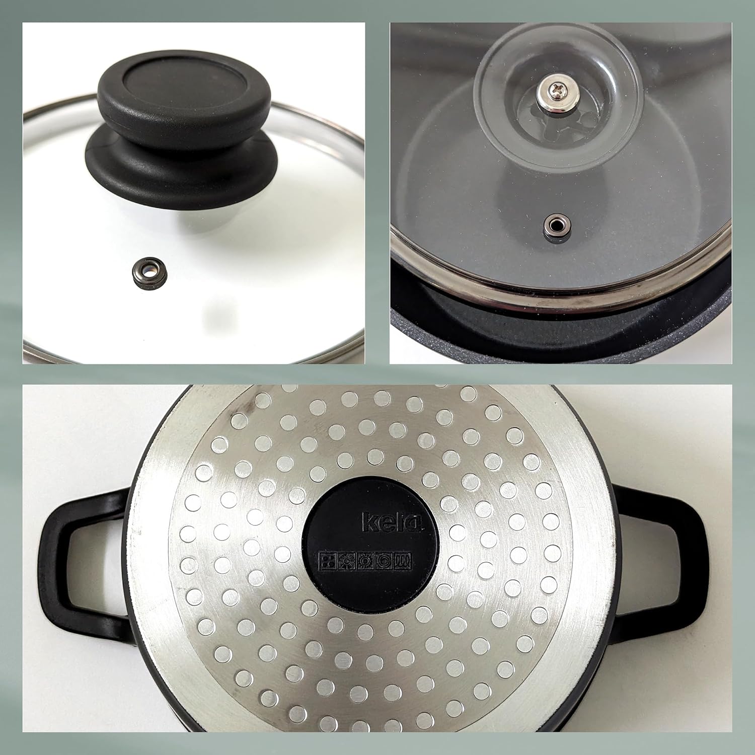 kela Fleischtopf 20 cm mit Glasdeckel ATURA, Kochtopf klein 1,7 Liter, Topf Induktion, Aluguss keram