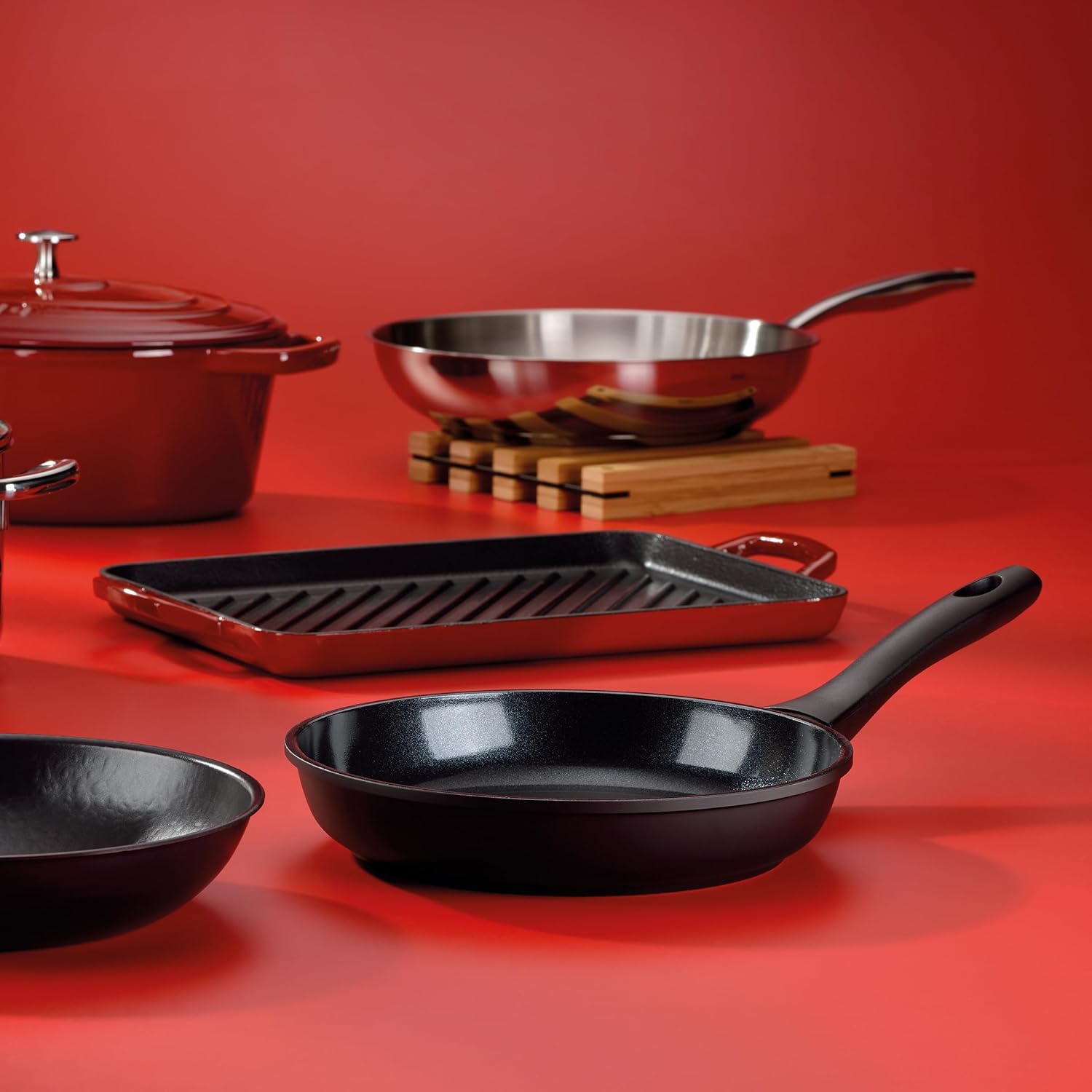 • Dank der hohen Kratzfestigkeit bleiben die Töpfe auch bei häufiger Nutzung in Topform. Die erstklassige Verarbeitung und das robuste Material sichern eine lange Lebensdauer zu, die aus einem Guss gefertigten Griffe bieten Sicherheit