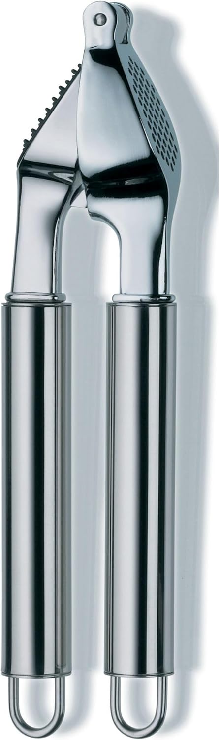 - Lieferumfang: 1x Edelstahl Knoblauchpresse (Art. Nr. 19062), Masse 20 x 3,5 cm. Zur Küchenserie RONDO gehören noch über 40 weitere praktische Küchenhelfer