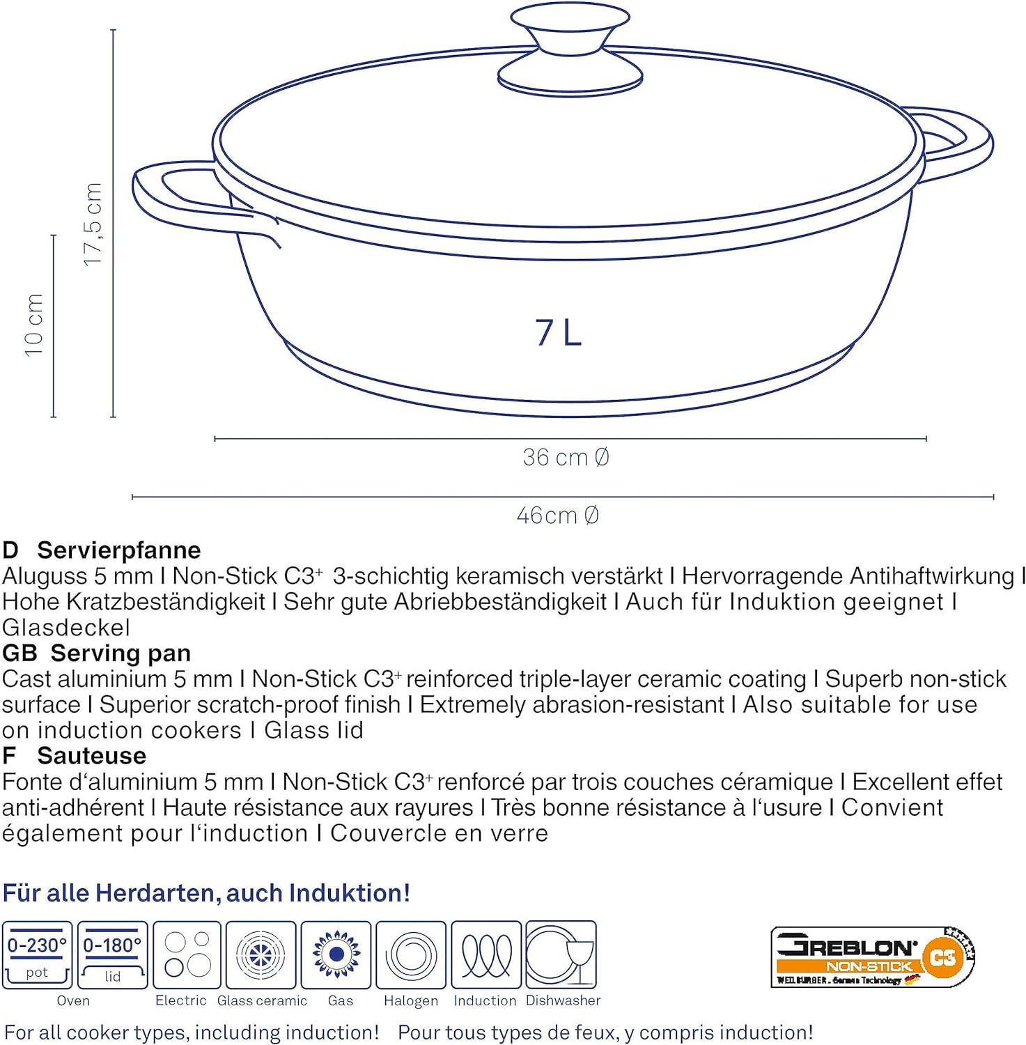 - Spass in der Küche durch die schnelle und einfache Zubereitung von leckeren Gerichten: Servierpfanne zum Kochen, Überbacken im Ofen oder zum Servieren - Geeignet für Gas, Glaskeramik, E- und Induktionsherd