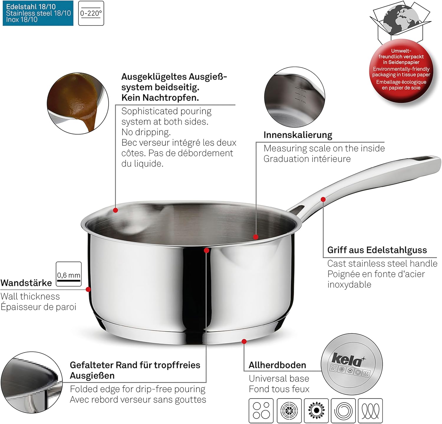 - Der vielseitige Stieltopf FLAVORIA aus Edelstahl in Glanzoptik ist perfekt für alles was schnell erhitzt und präzise dosiert werden muss: Saucen, Milch, Pudding oder kleinere Schmorgerichte