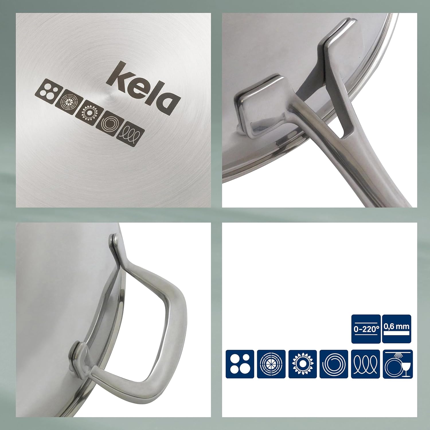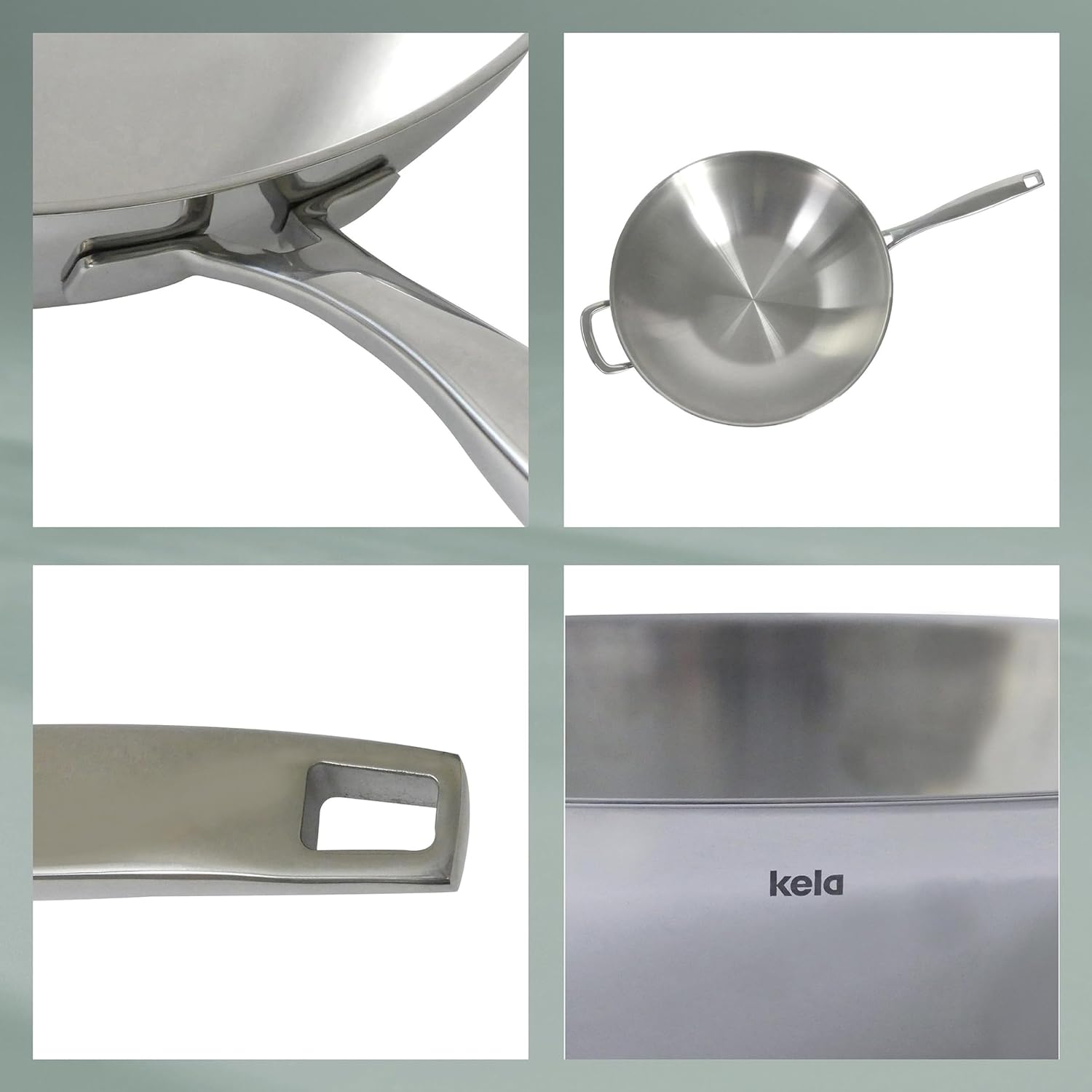 - Lieferumfang: 1x kela Wok, Flavoria, 10193, Material: 18/10 Edelstahl, Füllmenge: 5 L, Masse: H 9,5 cm, Ø 32 cm