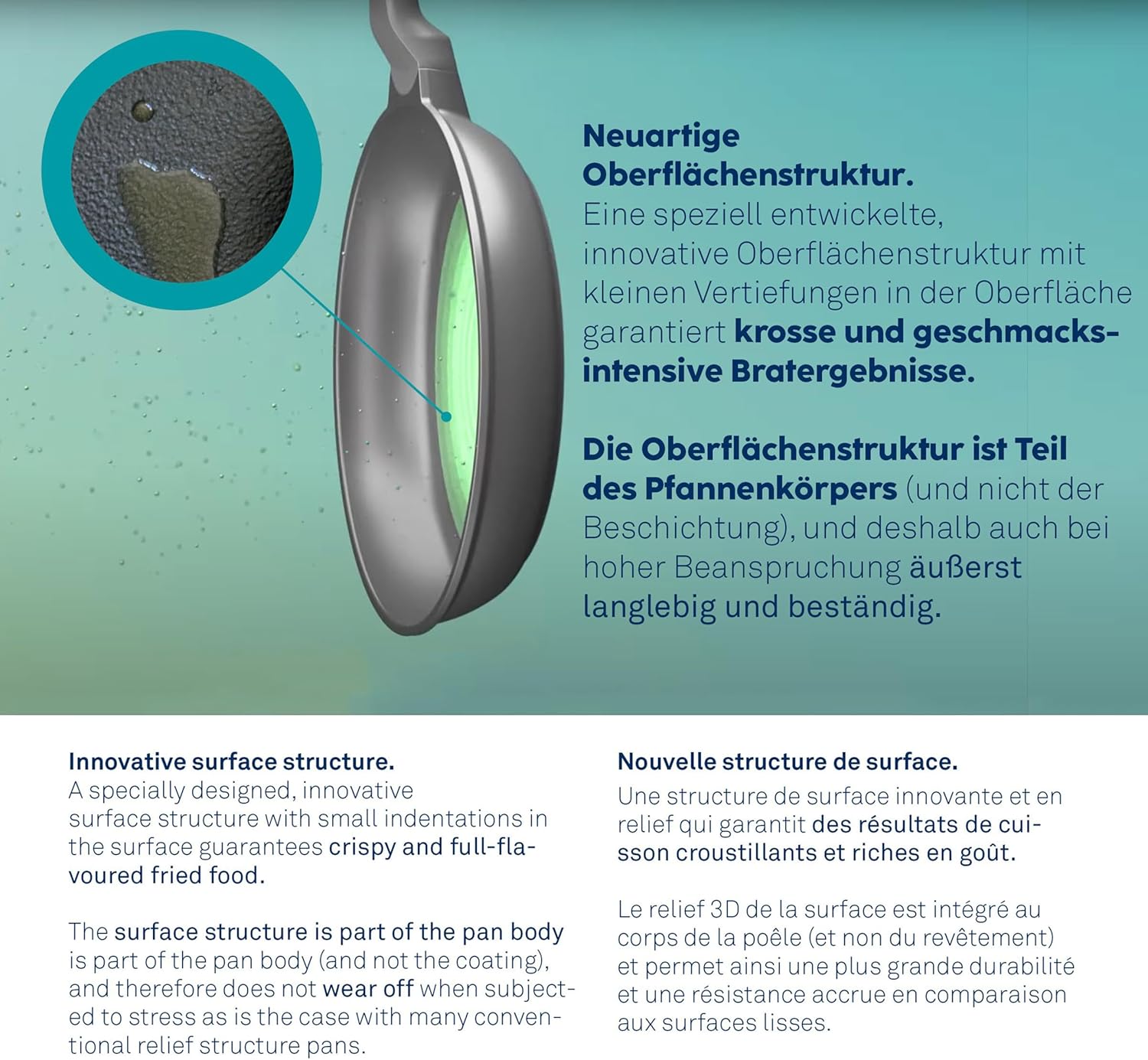 - Antihaftbeschichtung ILAG Ultimate HL, Oil Control System für eine gleichmässige Ölverteilung, Kurze Aufheizdauer durch induktionsfähigen Energiesparboden aus Edelstahl