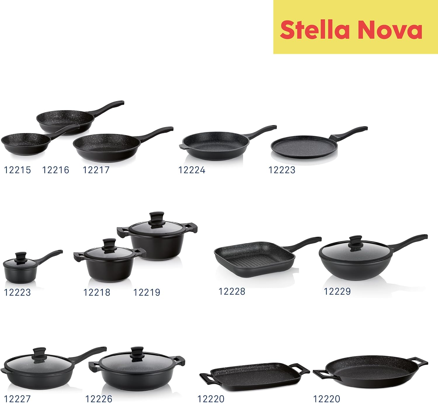 • Lieferumfang: 1x kela Wok Stella Nova, 12229, Material: Aluguss, Masse: H 10 cm, Ø 30 cm, Füllmenge: 5 L, Farbe: Schwarz