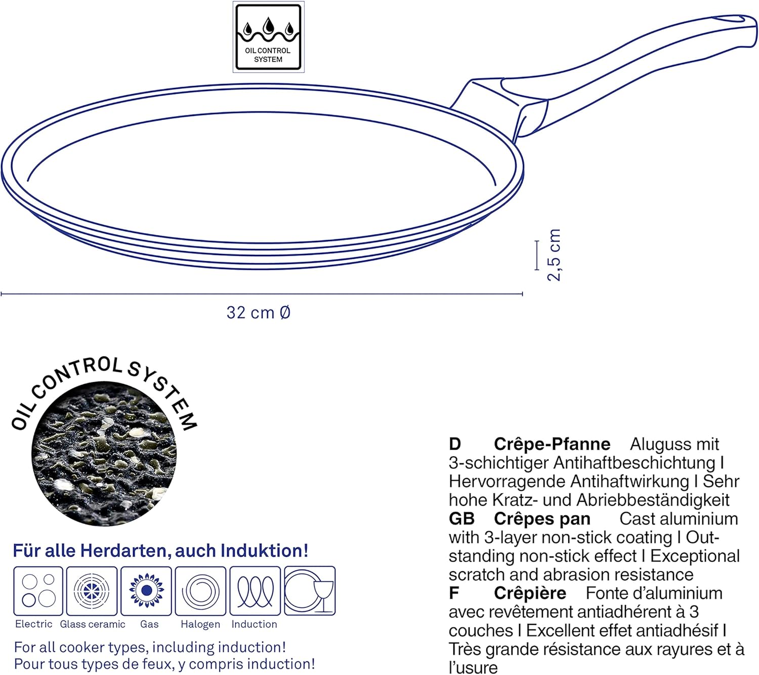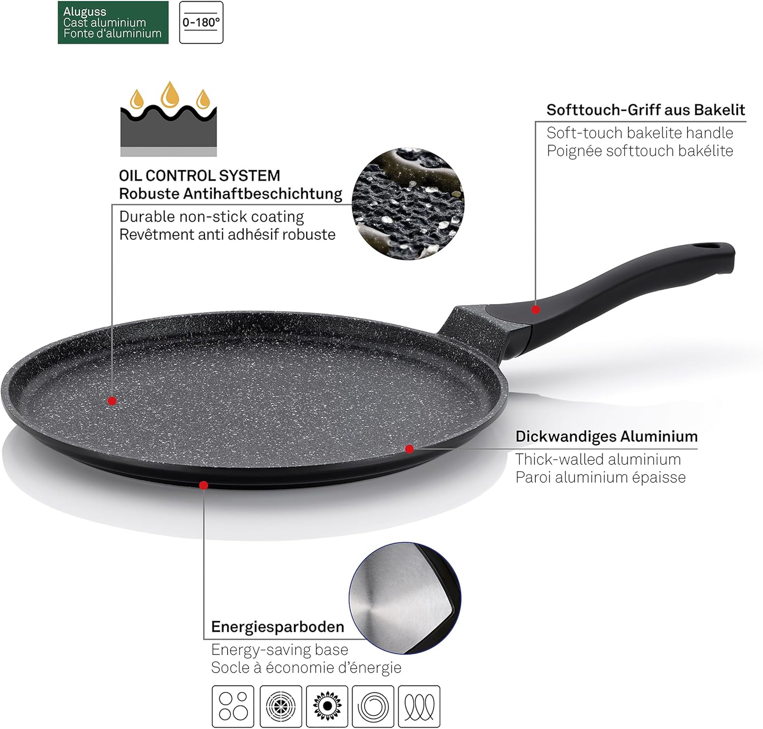 - Spass in der Küche durch einfaches Zubereiten von leckeren Gerichten: Crêpe-Pfanne mit flachem Rand für hauchdünne Crêpes-Kreationen – Geeignet für Gas, Glaskeramik, Halogen, E- und Induktionsherd