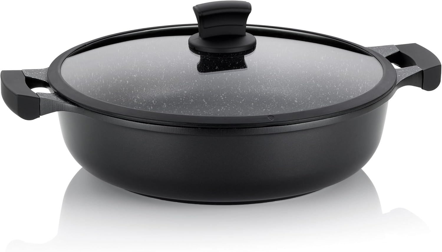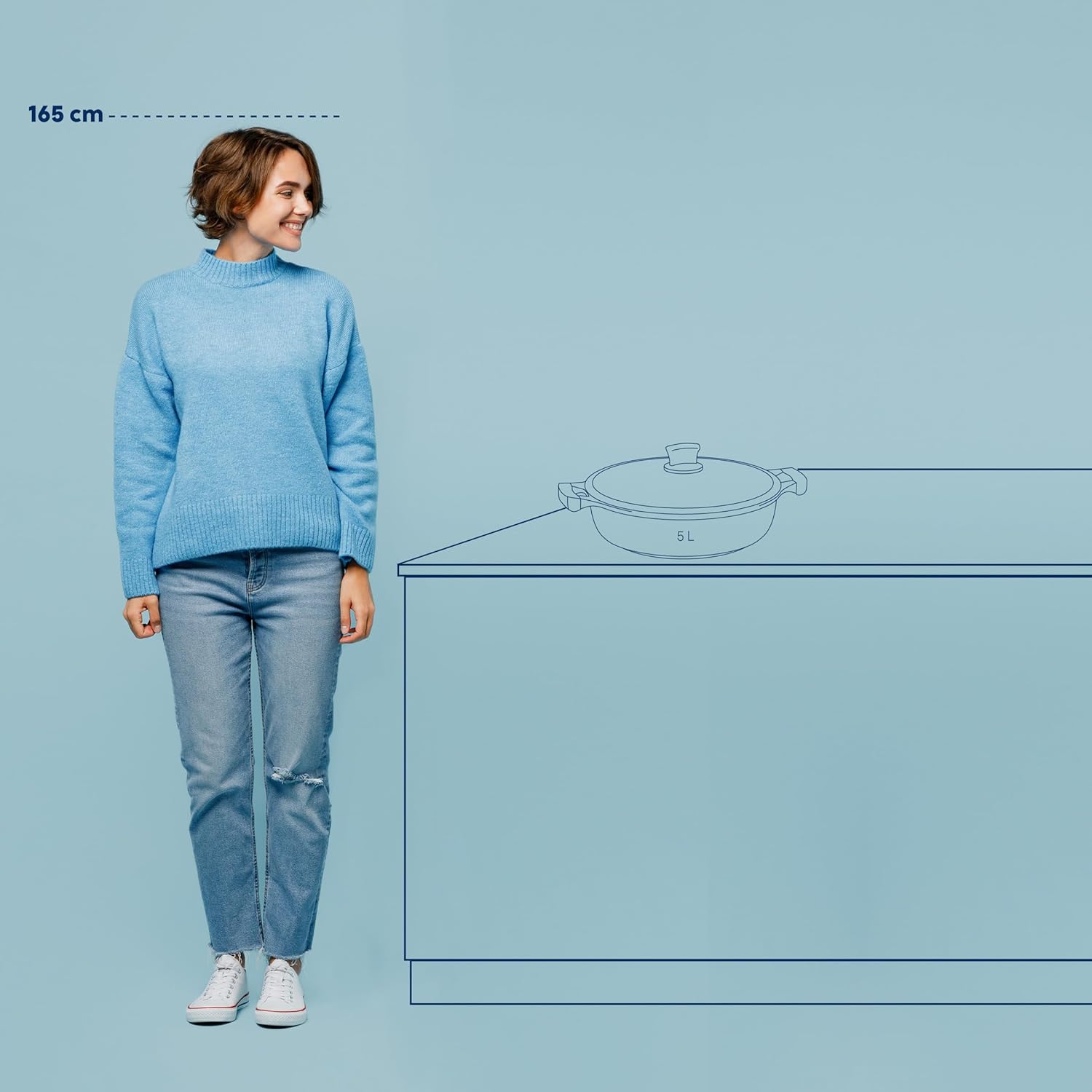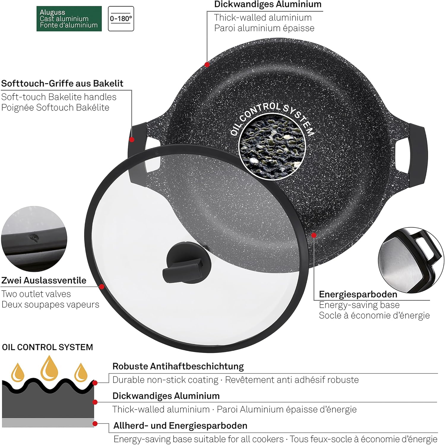• Gesünderes Kochen: Nährstoffschonend, Reduzierte Nutzung von Öl und Bratfett durch 3-fache Antihaftbeschichtung, Hitzebeständige Soft-Touch-Griffe an Pfanne und Deckel