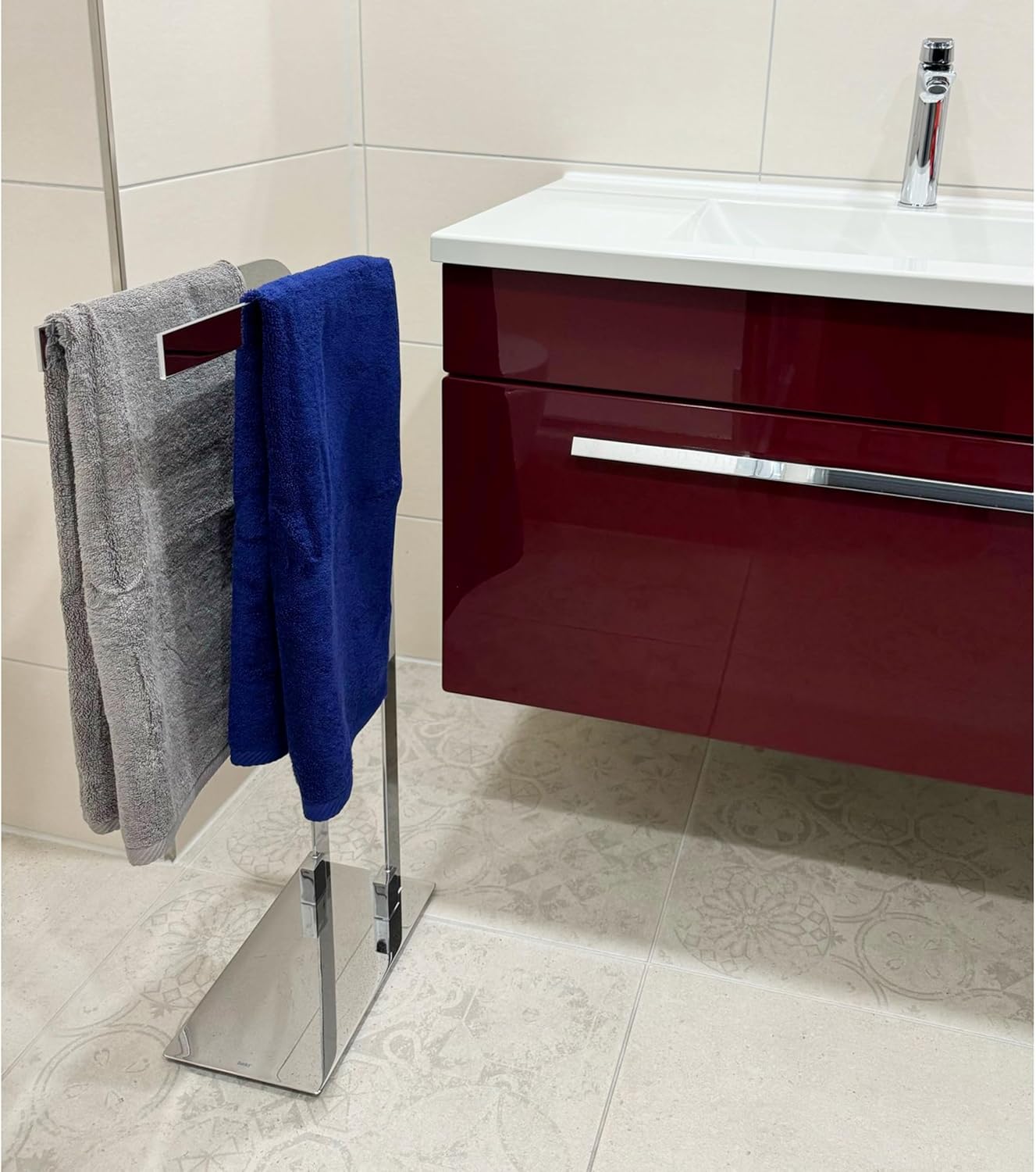 - Edles Design – Gerundete Form der Handtuchstangen, Verchromte Bodenplatte aus hochwertigem Metall