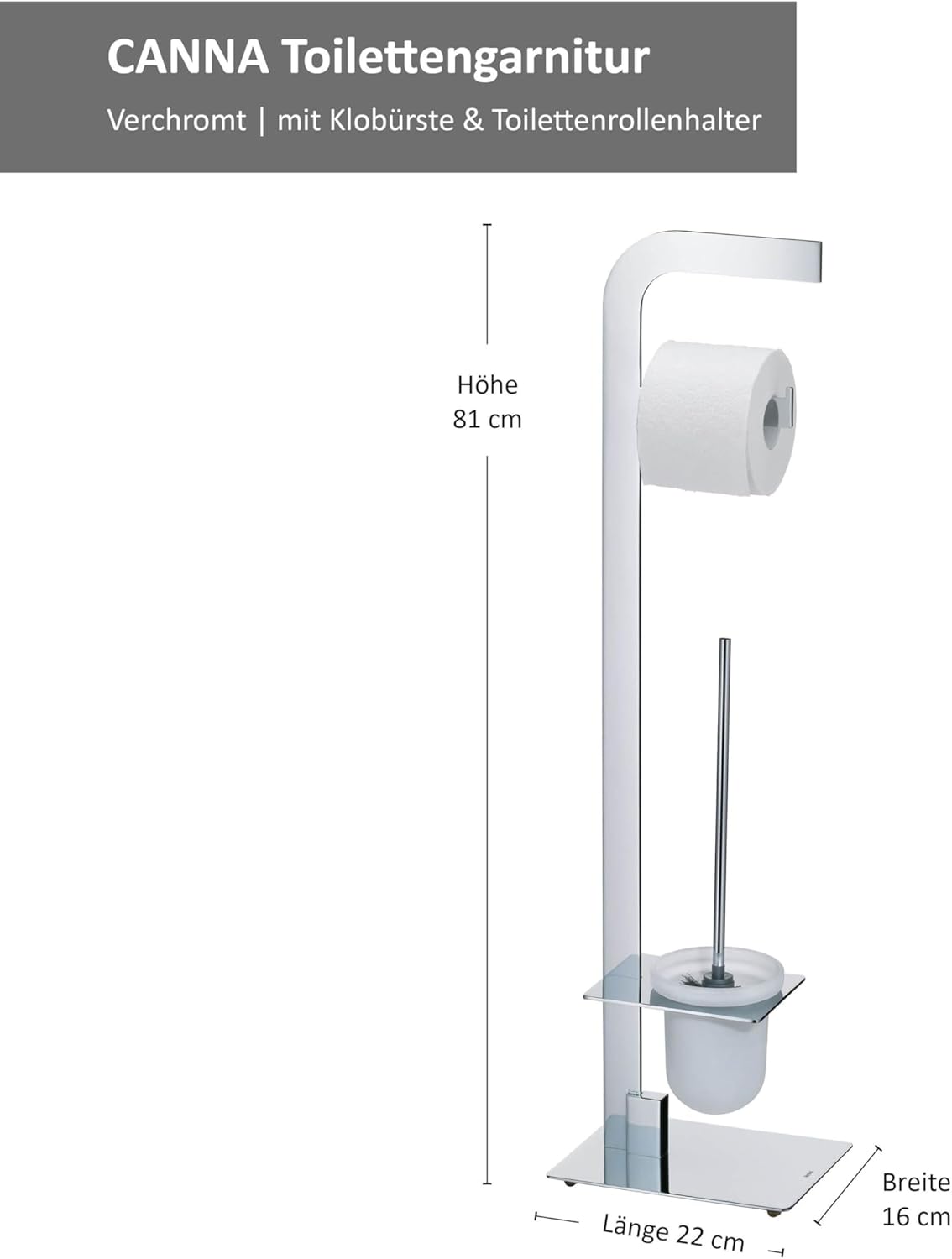 • Lieferumfang: 1 Kela Toilettengarnitur, Canna, 21991, Masse: L 22x B 16X H 81cm, Farbe: Verchromt, Material Garnitur: Metall
