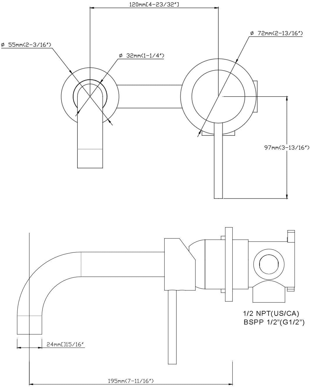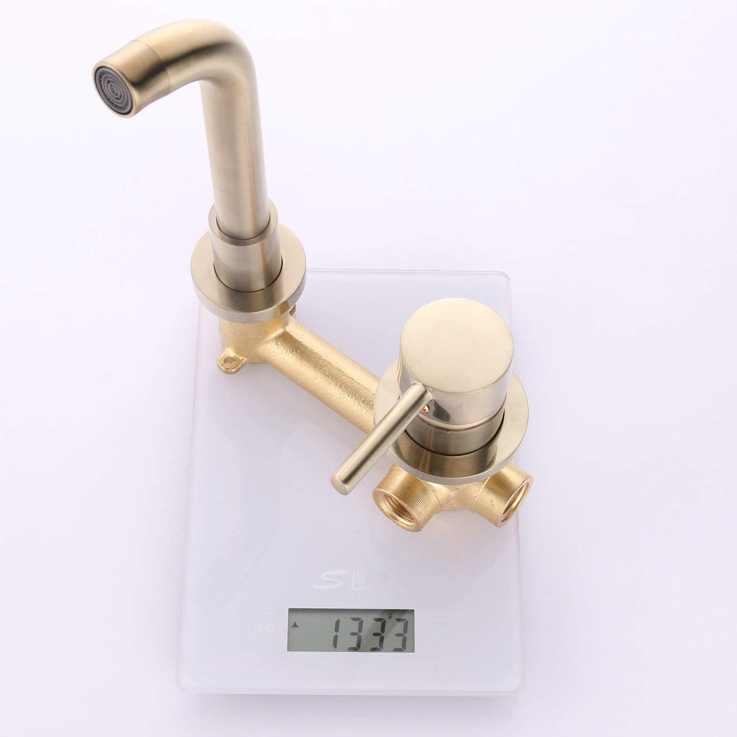 Kelelife Wandmontierte Messing Waschbecken Wasserhahn Waschtischarmatur Waschtischarmatur gebürstet