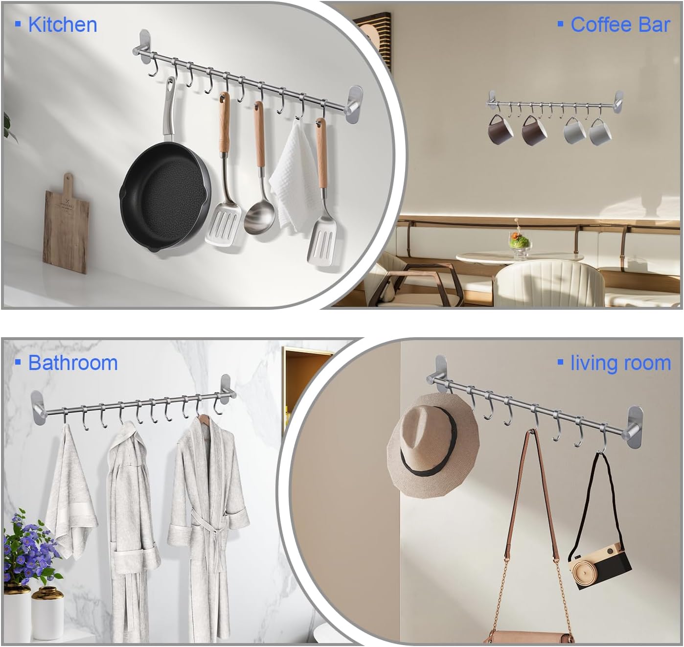 - Universal einsetzbar. Dieser Edelstahl Hängeleiste Passt gut auf Balkon, im Bad, in der Küche für Topf, Pfannen, Küchenhelfer, Tasse, Regenschirm, Tasse, etc.