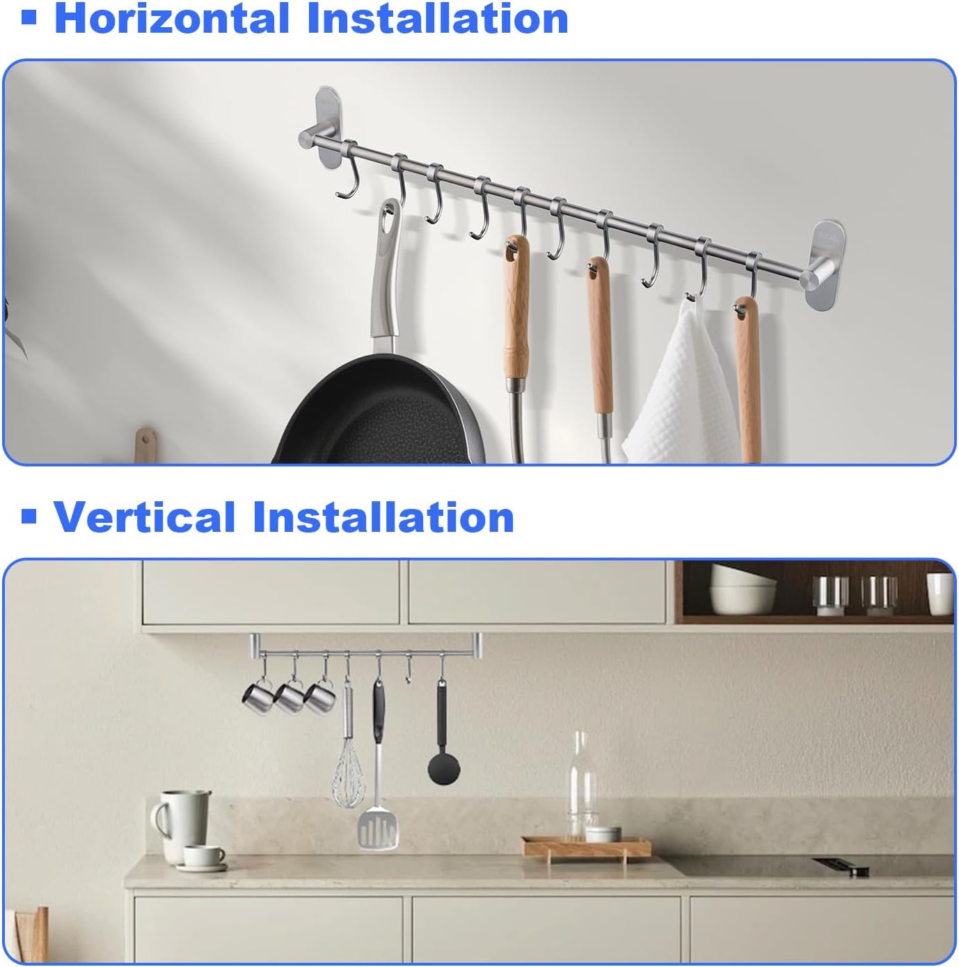 - Optisch platzsparendes Design. Mit den beweglichen Haken können Sie sehr einfach den Abstand zwischen Haken nach der Grösse von Küchenutensilien einstellen. Der Abstand zwischen die Stange der Küchenleiste und der Wand liegt am 4cm, Sie können die