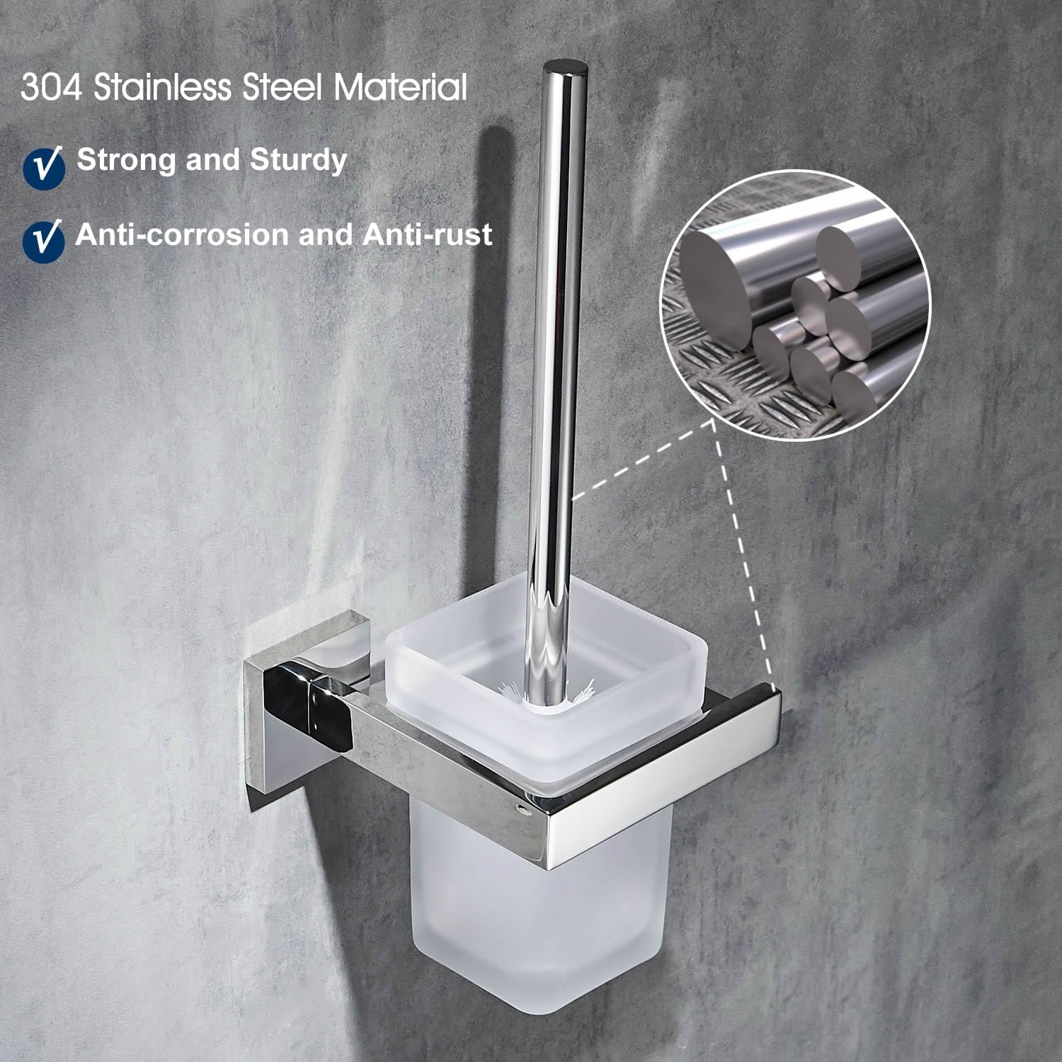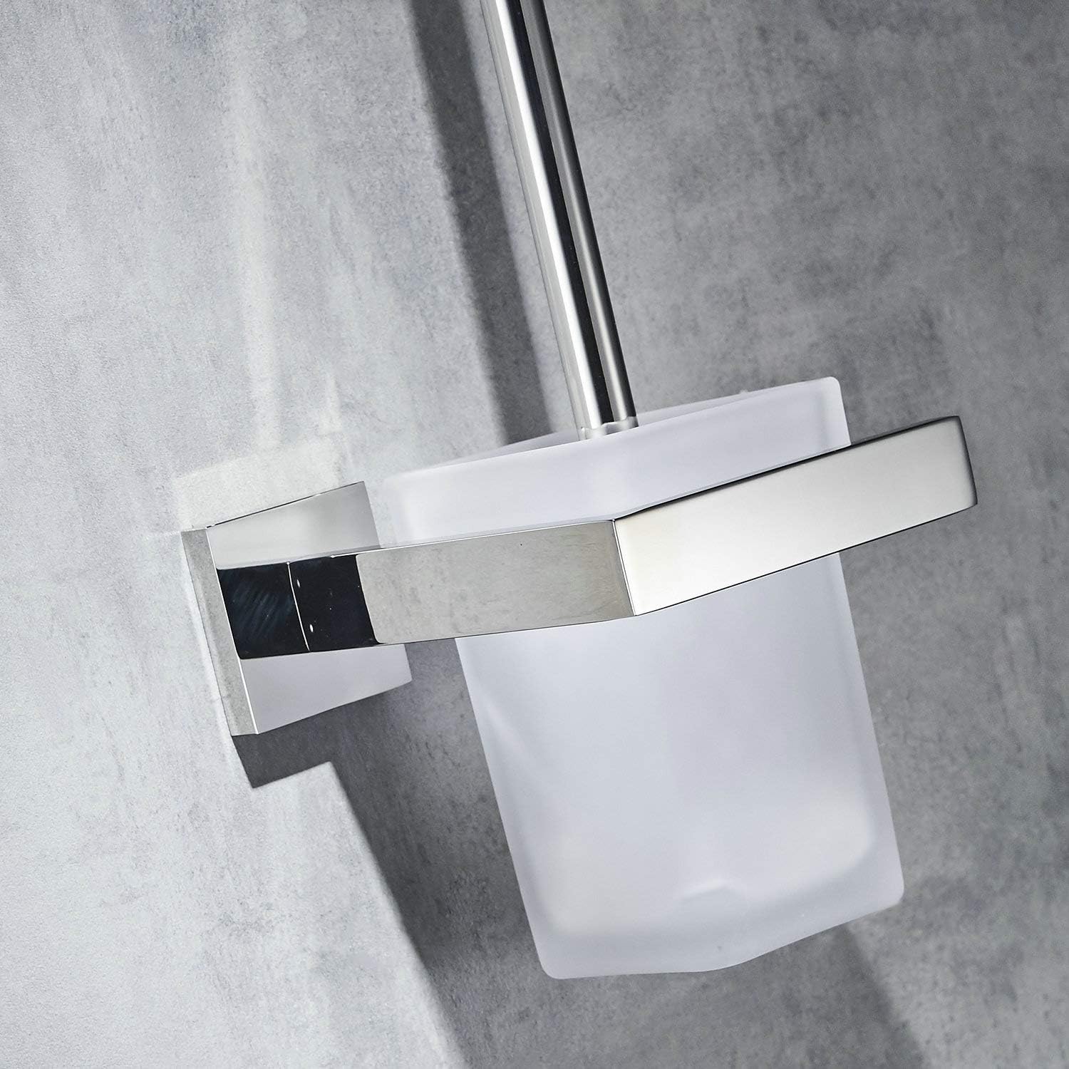 - Toilettenbürstenhalter aus Edelstahl SUS 304 und Milchglas, verchromt.