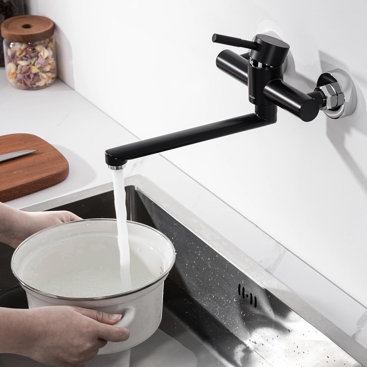 - 【Platz und Ästhetik kombiniert】Unsere Wandmontage-Küchenarmatur maximiert nicht nur den Raum, sondern trägt auch zur Schönheit Ihrer Küche bei. Dieses clevere Design spart Arbeitsfläche und bietet Ihnen mehr Platz zum Kochen und Reinigen.