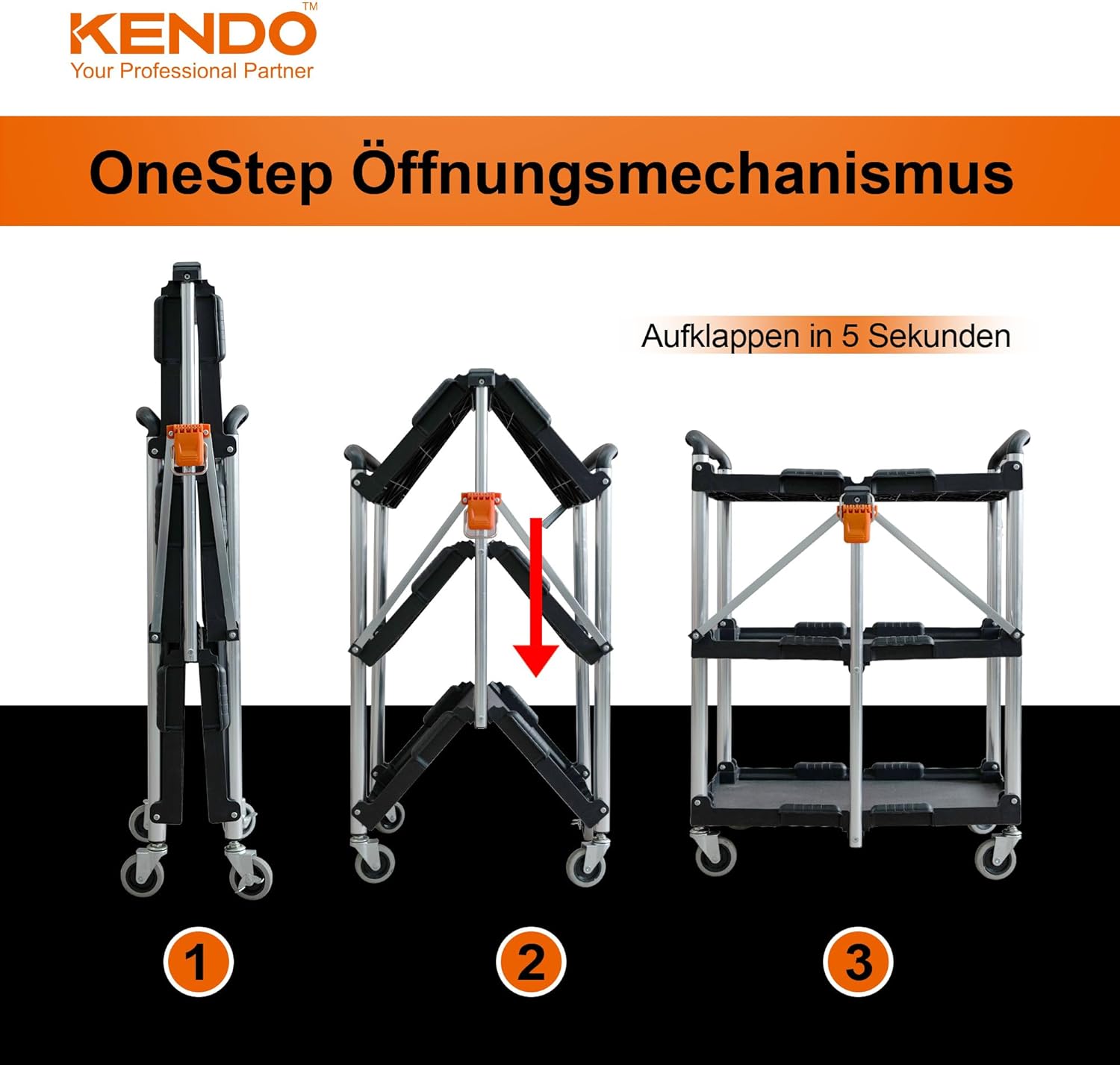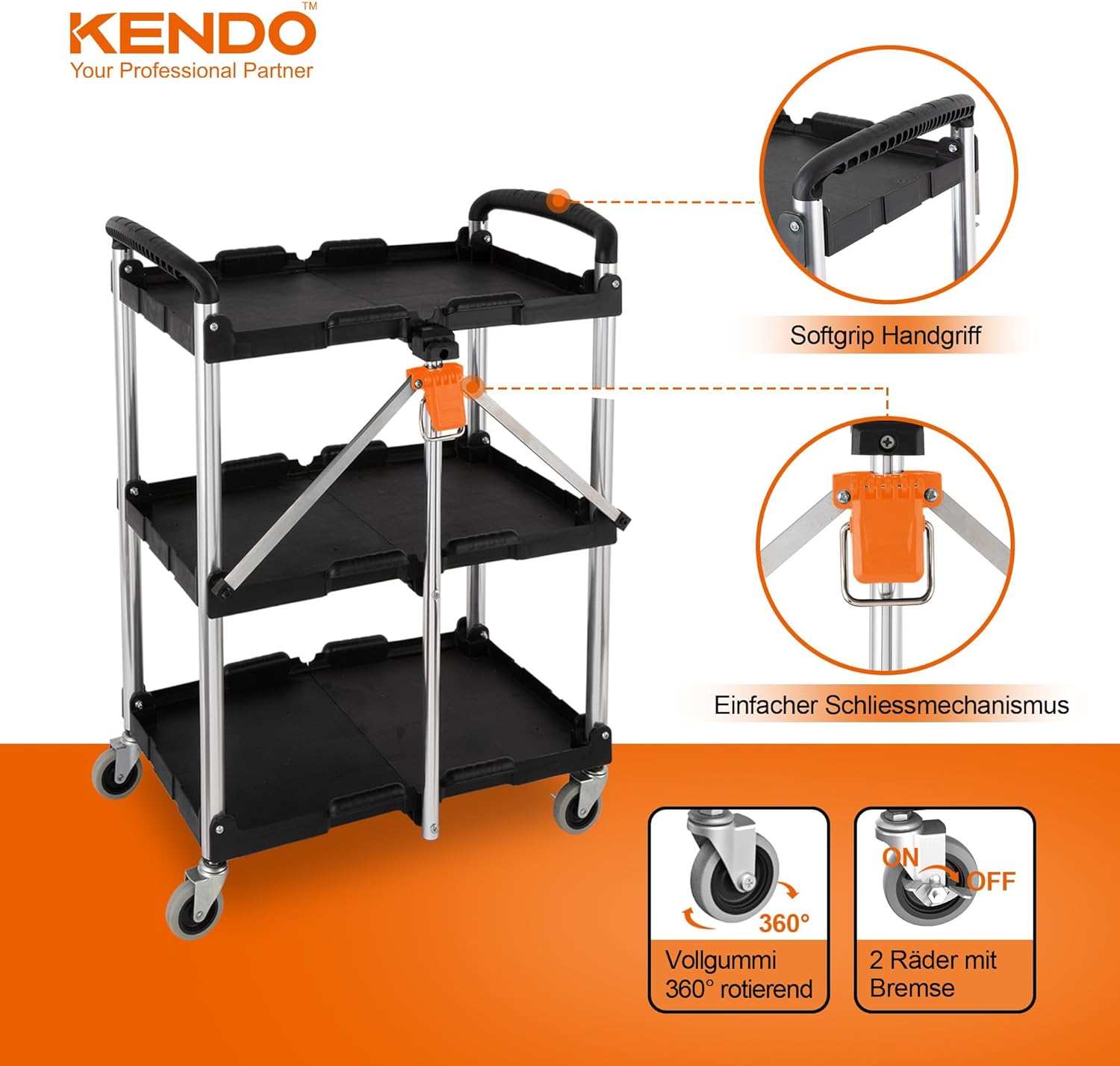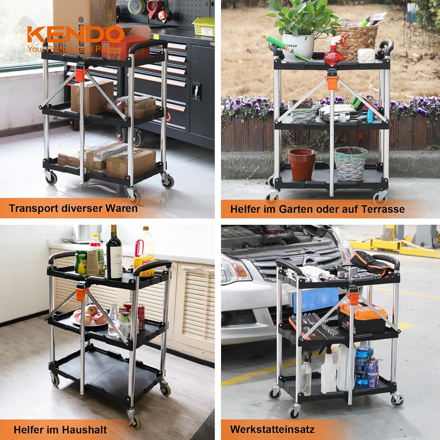 - VIELSEITIGE ANWENDUNG: Dieser KENDO einklappbare Servicewagen ist ein wirkliches Multitalent für den sicheren Transport von diversen Gegenständen bis zu einem Gesamtgewicht von 65 kg. Egal ob als Küchenwagen, rollbarer Beistellwagen, Bastelwagen oder Bücherwagen finden Sie zahlreiche Einsatzmöglichkeiten in Haushalt oder im gewerblichen Bereich.
