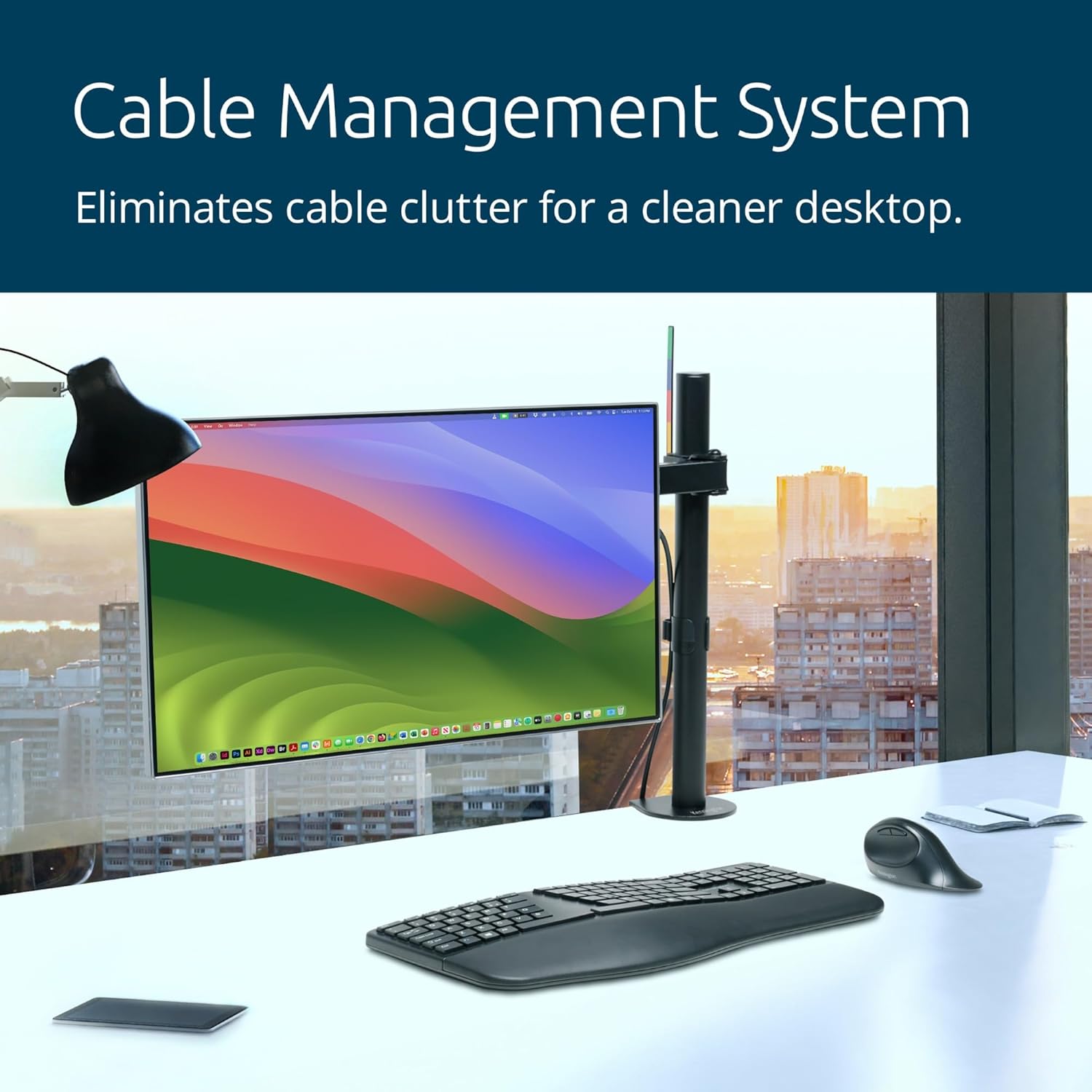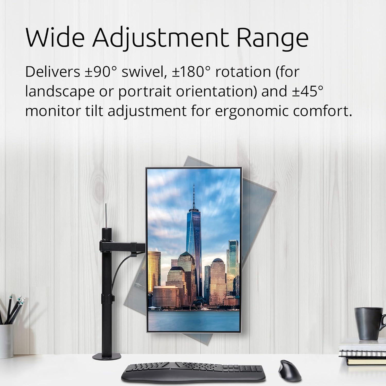 - Flexible Einstellungen: ausziehbarer Monitorarm (bis 399 mm) mit ±90° Schwenkung, ±180° Drehung und ±45° Monitorneigung für ergonomischen Komfort und Ordnung (mit Kabelführungssystem)