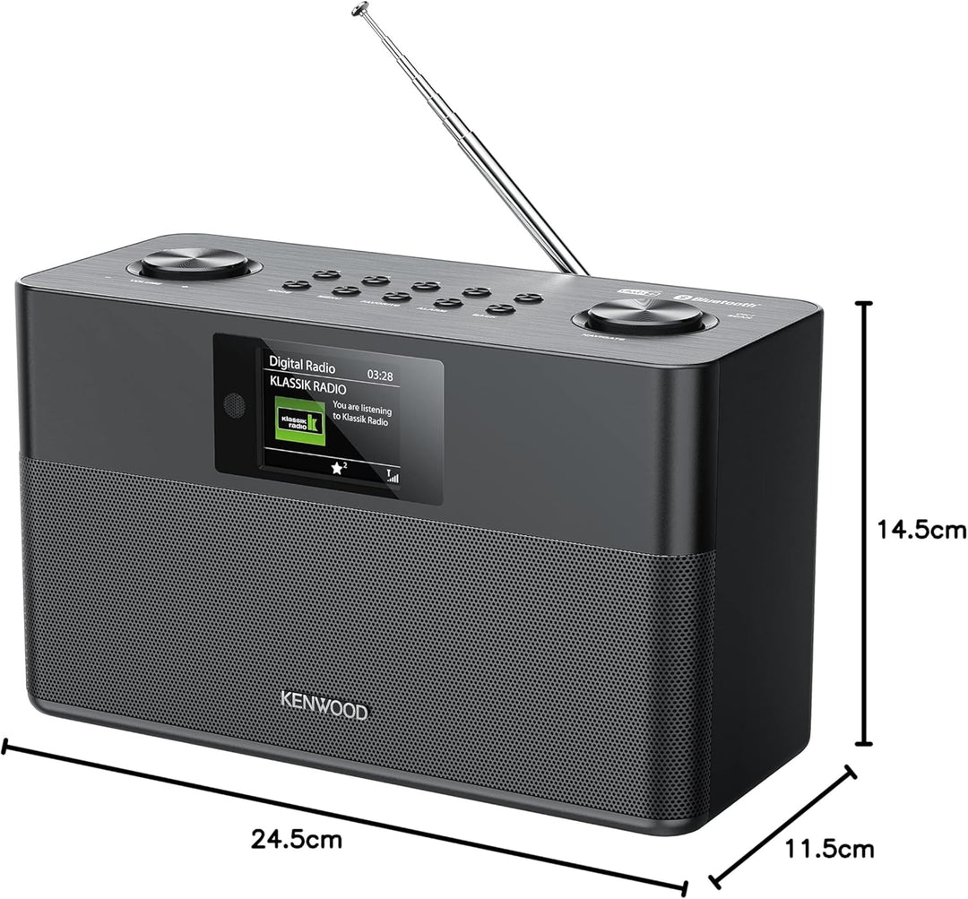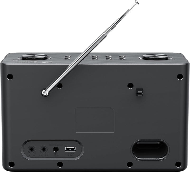 - Verstärker mit 2 x 10 W RMS; Bassreflex Stereo-Lautsprecher; 6,1 cm grosses TFT-Farbdisplay; Uhrfunktion inkl. Wecker und Sleeptimer