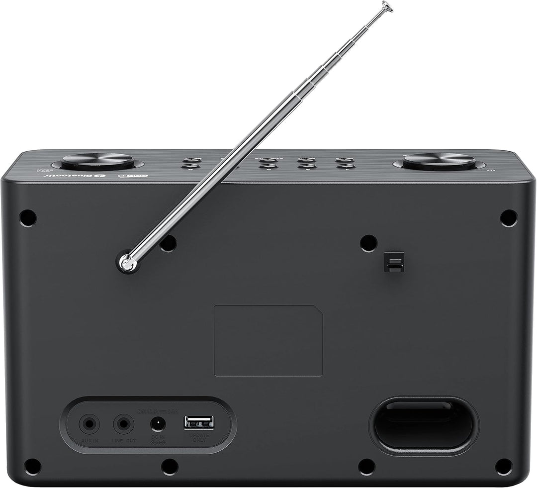 - DAB+ und UKW RDS-Empfänger; 20 Presetsstationen; Bluetooth Audiostreaming (A2DP) zur Wiedergabe von Smartphone oder Tablet