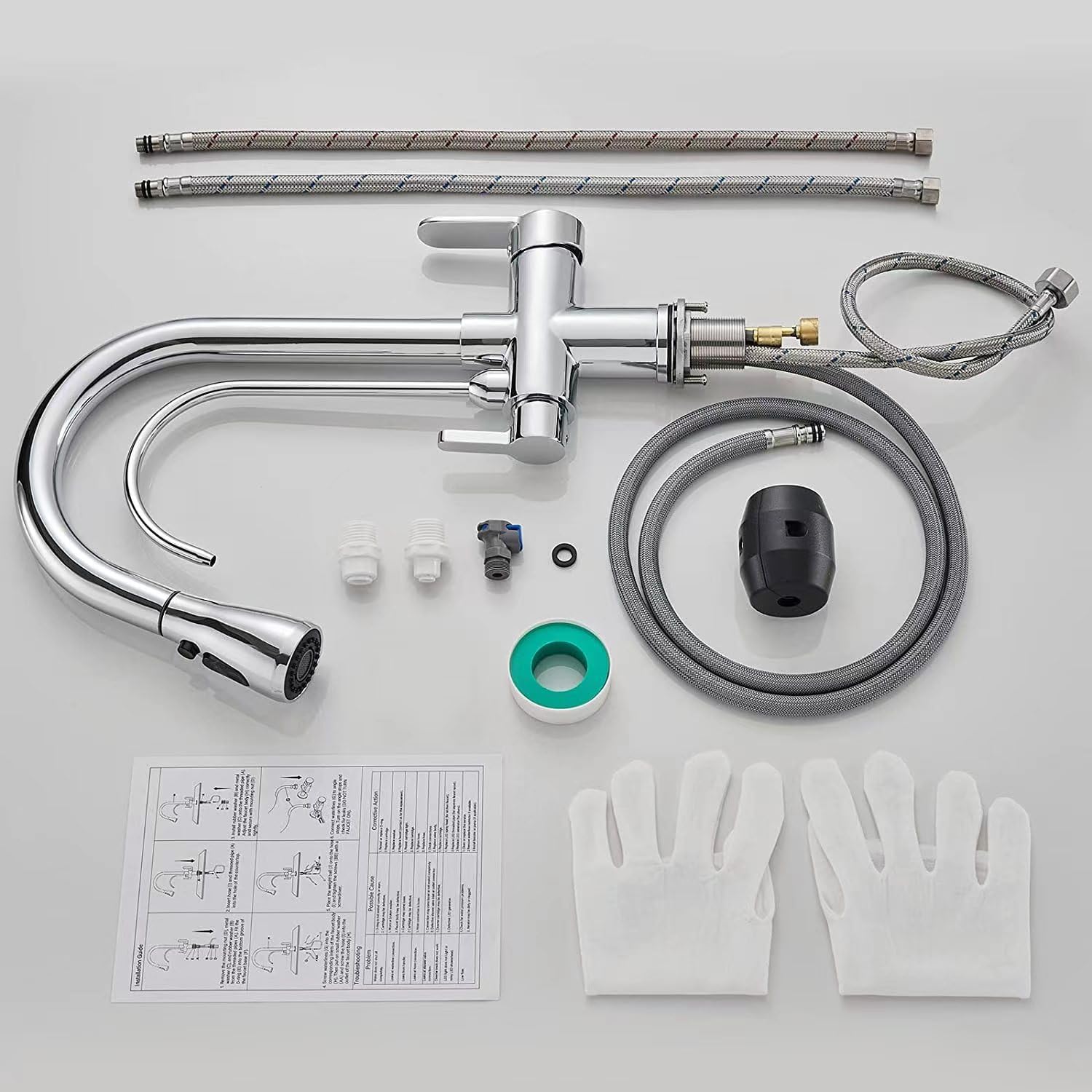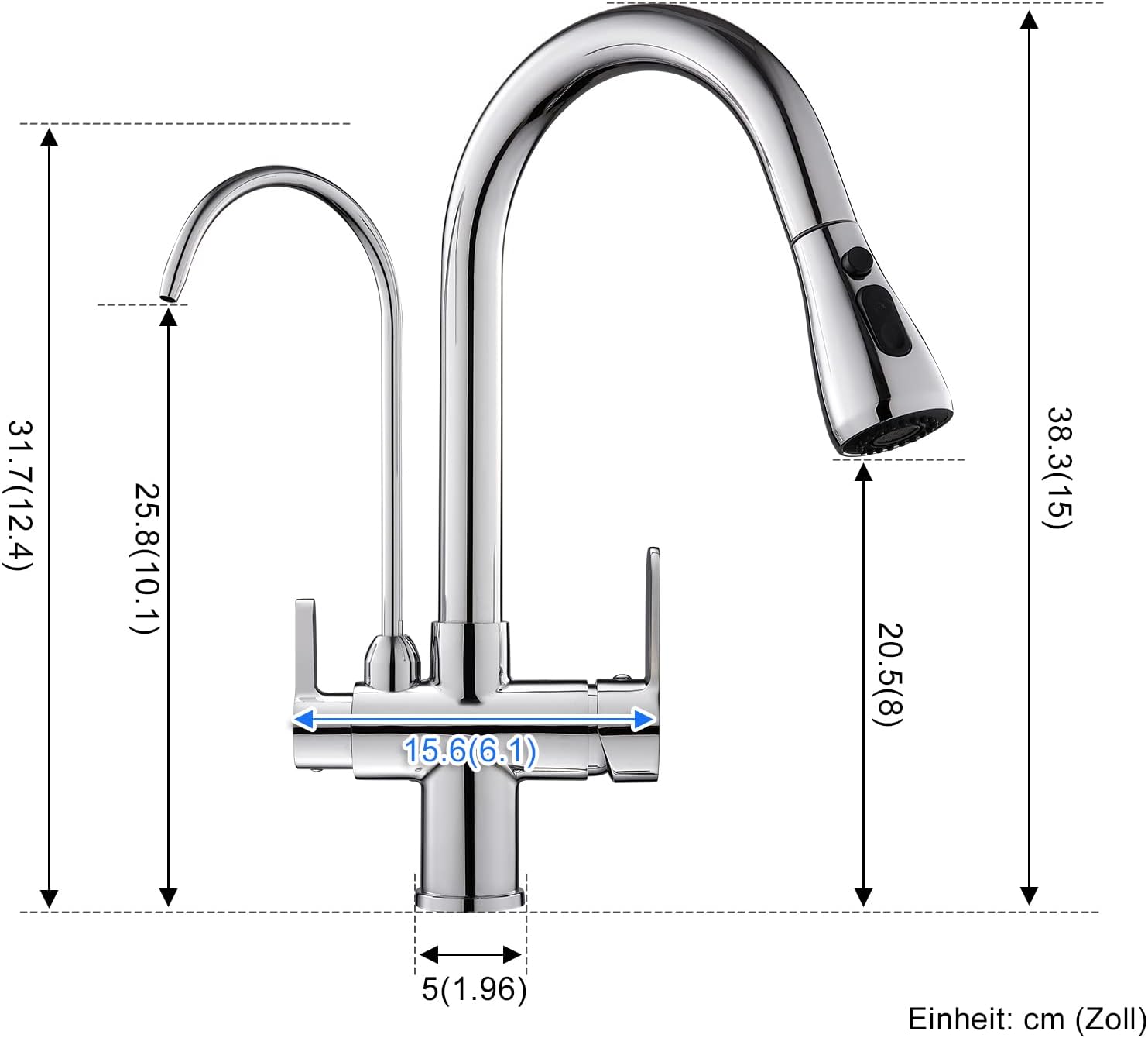 - 【3-in-1 Wasserfilterarmatur】3-Wege-Küchenarmatur, einschliesslich Heiss- und Kaltwasser und RO-Wasser (unter Spüle Filtersystem) Wasserhahnfunktion, können Sie die Kosten für den Kauf von Trinkwasserarmaturen oder Pull-Down-Küchenarmaturen