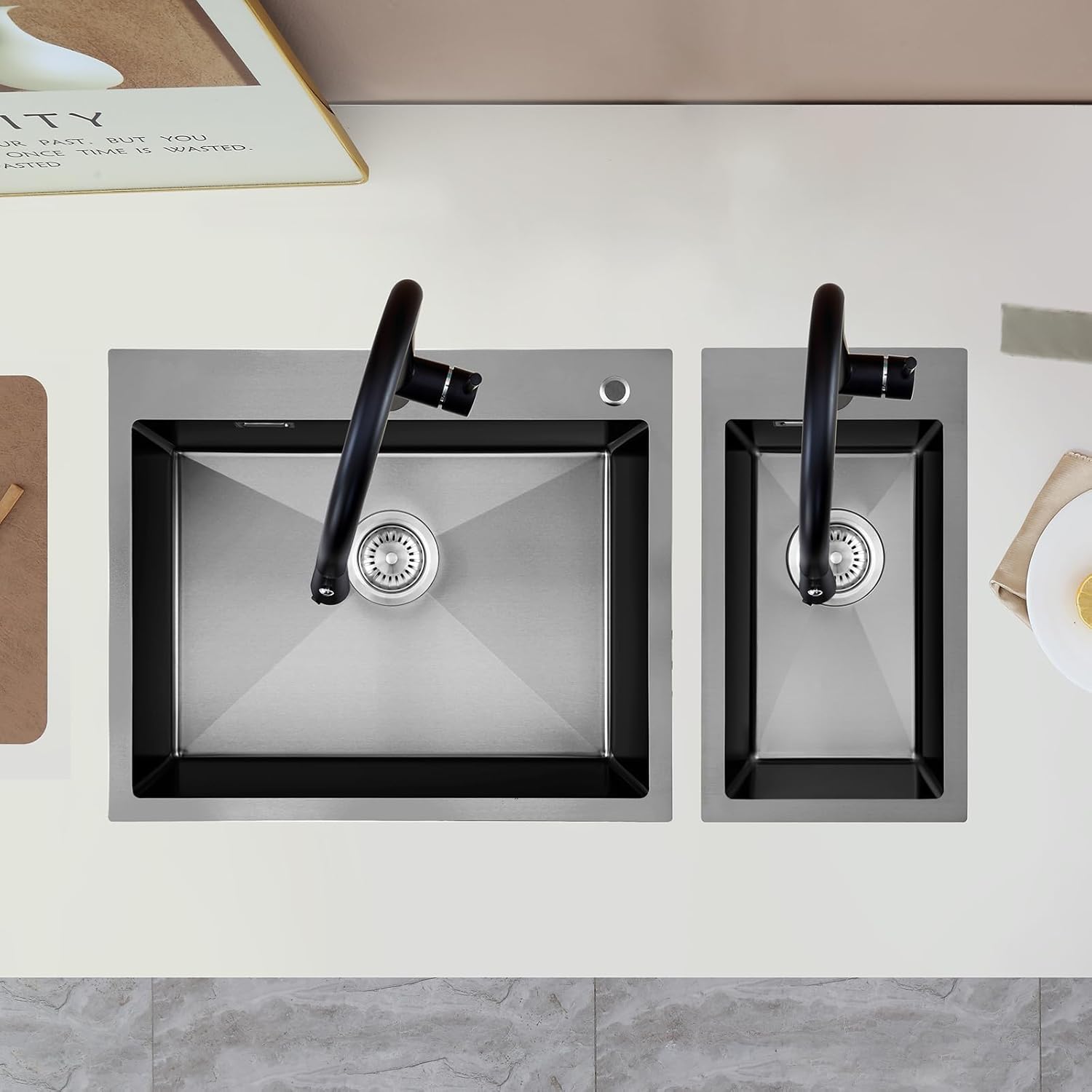 • 【Grosse Kapazität】 60cm (L) X 50cm (B) X 19cm (T); Innenbecken; Abmessungen: 55 (L) X 40 (B) X 18 cm (T).Ob Sie eine Spülmaschine haben oder lieber mit der Hand spülen, eine grosse Spüle Küche ist eine grosse Bereicherung für Ihre Küche.