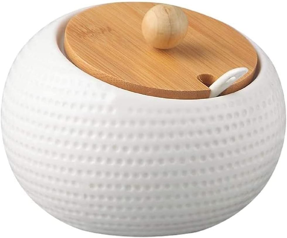 - Der Gewürzbehälter besteht aus hochwertigem Keramik mit Deckel und Holz Tablett. Dieser schlichte, und wunderschöne Marmoroptik passt auf jede Küche.