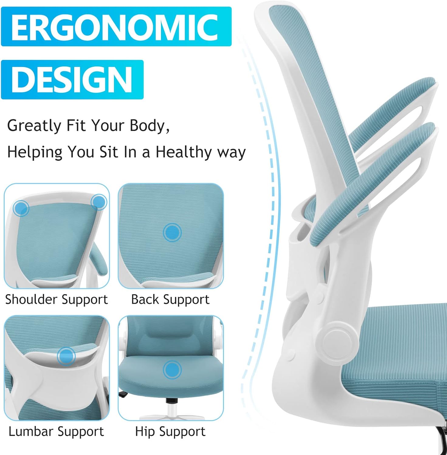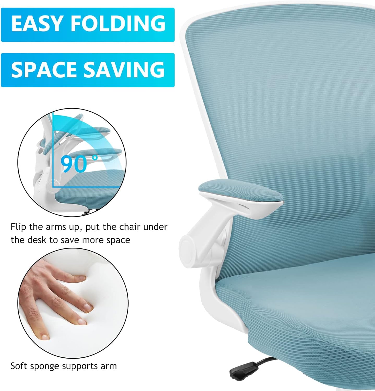 KERDOM Bürostuhl, Ergonomischer Schreibtischstuhl mit Klappbaren Armlehnen, 360° Drehstuhl Mesh Comp