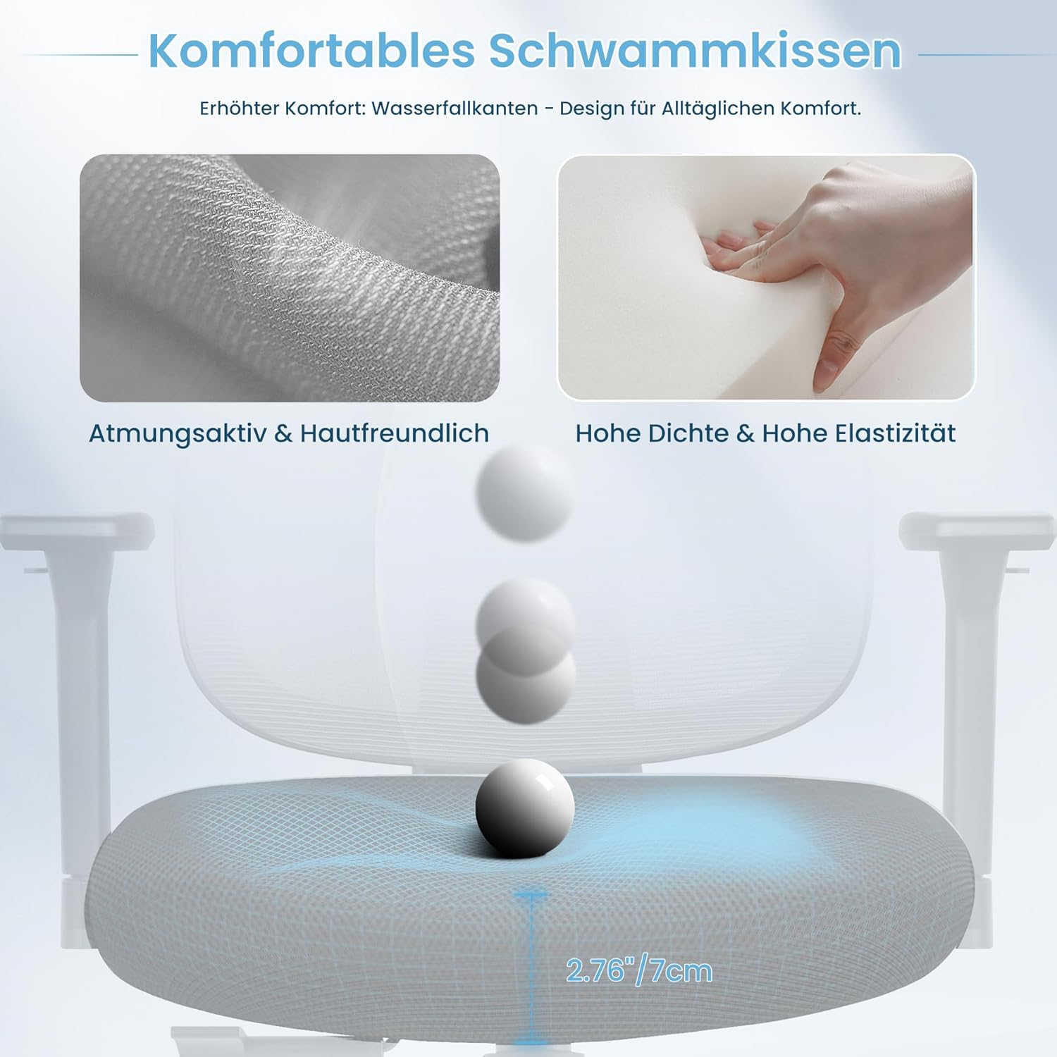 - 【Hochwertiges Material】 Das Kissen des Bürostuhls besteht aus hochwertigem Schwamm. Die moderate Härte und Weichheit sorgt für ein angenehmes Sitzerlebnis. Die Rückenlehne besteht aus einem hochelastischen Nylonnetz, das die Luftzirkulation