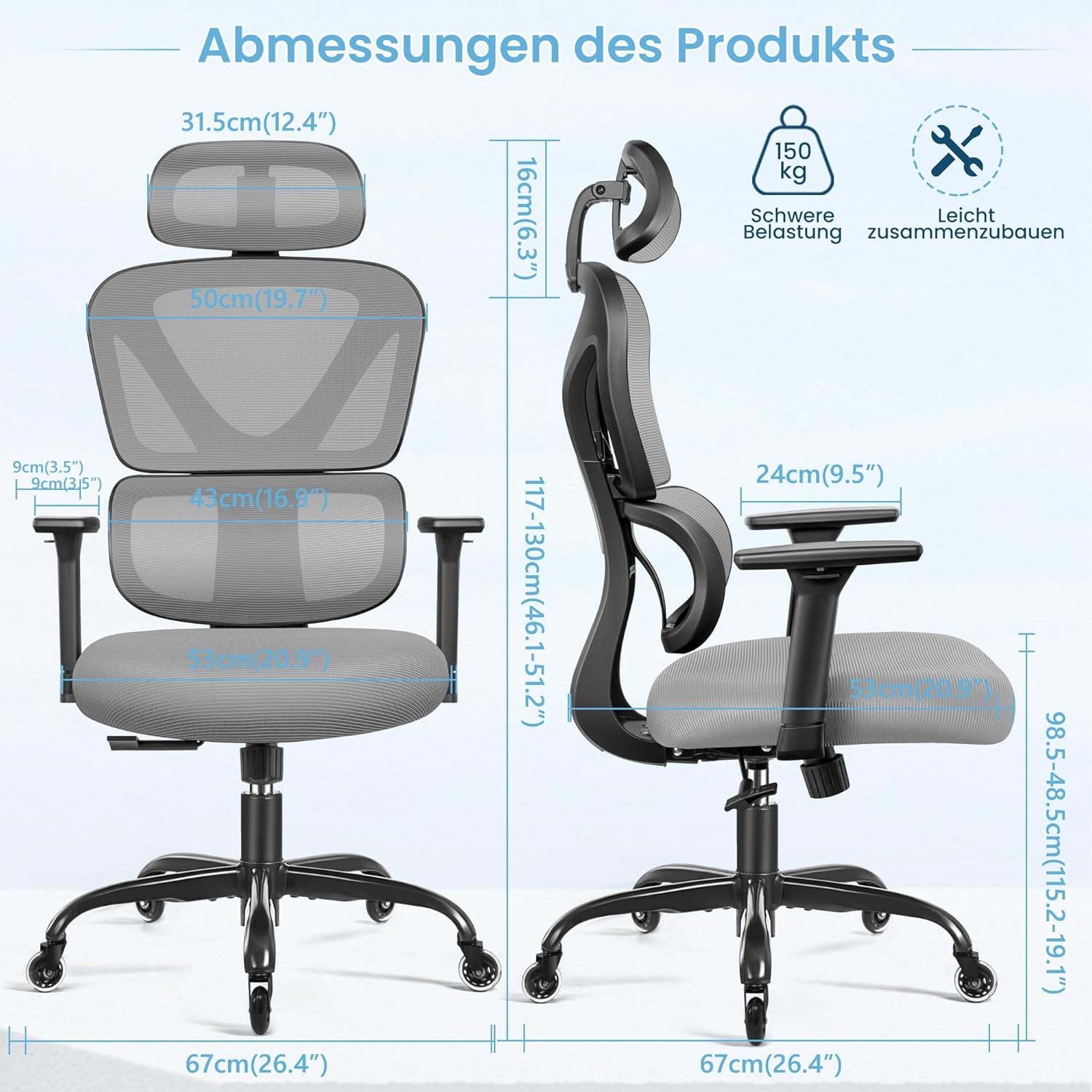 - 【Verstellbarer Bürostuhl】 Mehrdimensionale frei drehbare Kopfstütze kann die Halswirbelsäule schützen, verstellbarer Arm mit PU, 10 cm höhenverstellbarer Luftstab, kann 360°drehbar, flexibel an Ihre Büroumgebung anpassbar. Kippfunktion mit