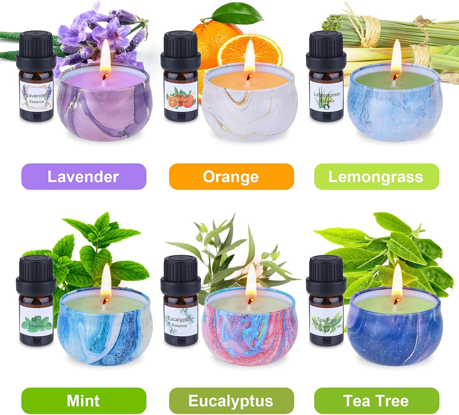 • DIY Your Duftkerze: 6 Aromen von ätherischen Öle sind enthalten, das sind Teebaum, Eukalyptus, Orange, Lavendel, Zitronengras, Minze. Sie können Bienenwachskerzen Ihre bevorzugten ätherischen Öle hinzufügen, um die Ruhe und den Komfort des