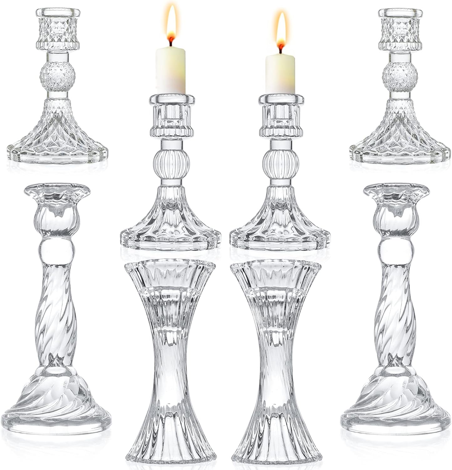 - Spitzkerzenhalter: Diese transparenten Kerzenständer verfügen über ein feines, schlankes Design, geschnitzt mit schöner Handwerkskunst und hochwertiger Konstruktion. Innendurchmesser 1,9 cm, sie passen für 2 cm Standard-Kerzen, passen nahtlos in