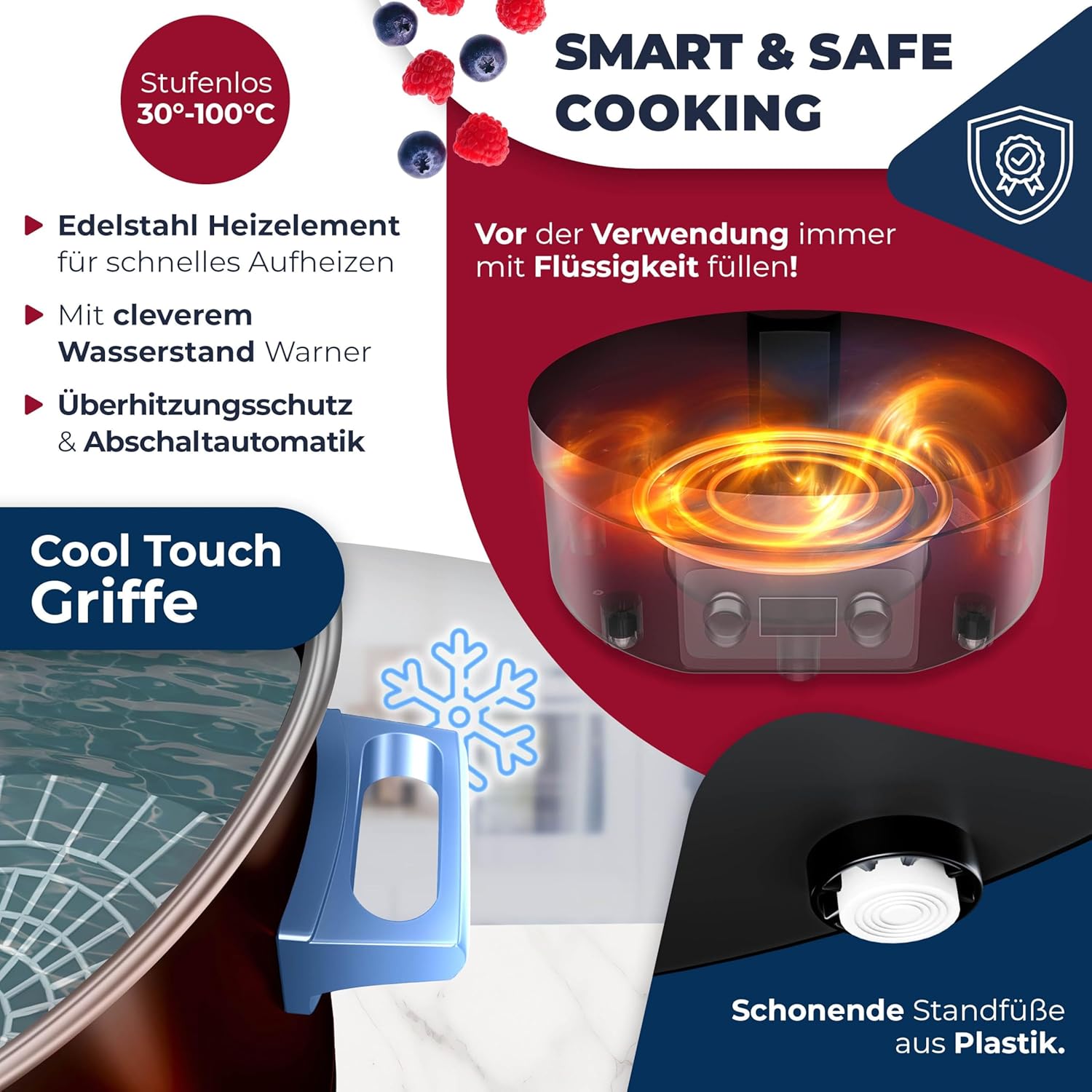 - 𝐌𝐔𝐋𝐓𝐈𝐓𝐀𝐋𝐄𝐍𝐓: Innen und aussen kratzfeste Emaillierung für eine lange Lebensdauer | für ca. 14 Gläser je 1 Liter | Temperaturkontrollleuchte in Rot, sobald die Temperatur erreicht ist erlischt das Licht.