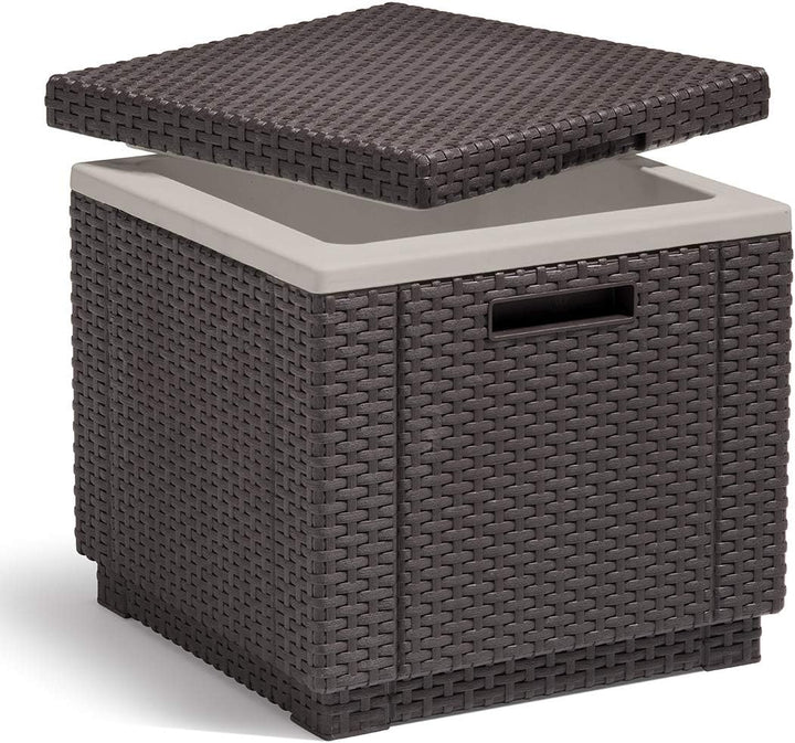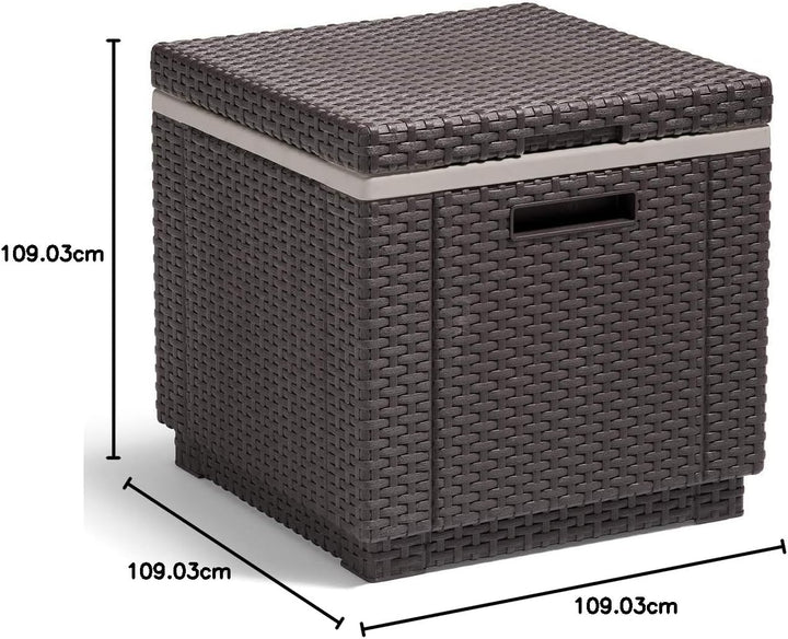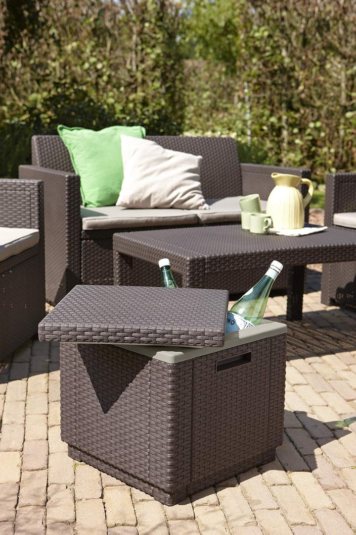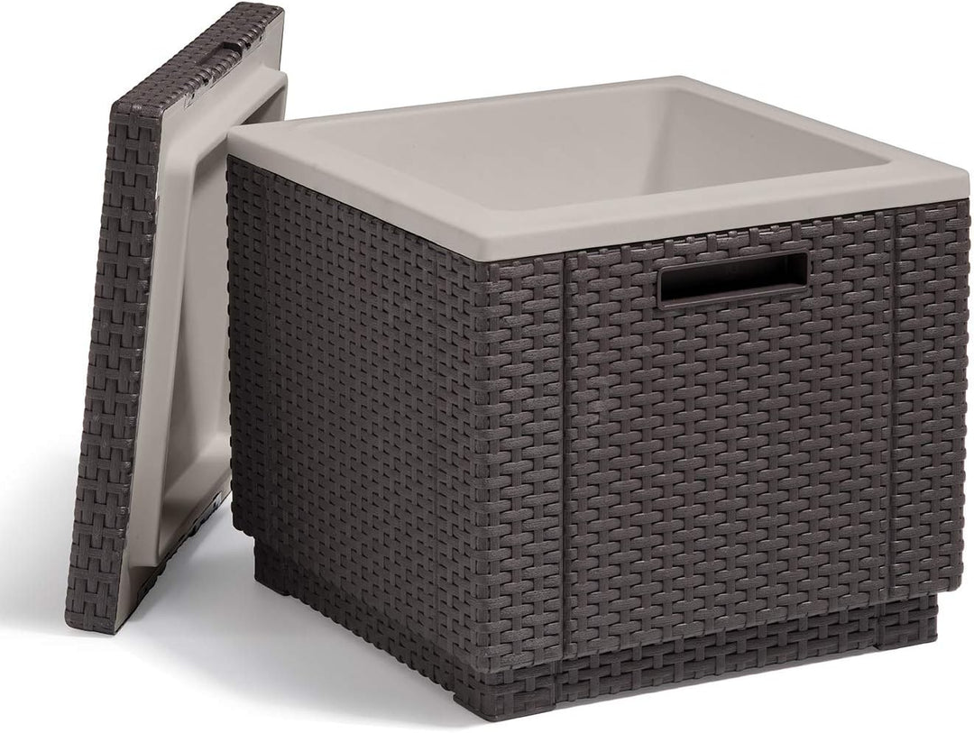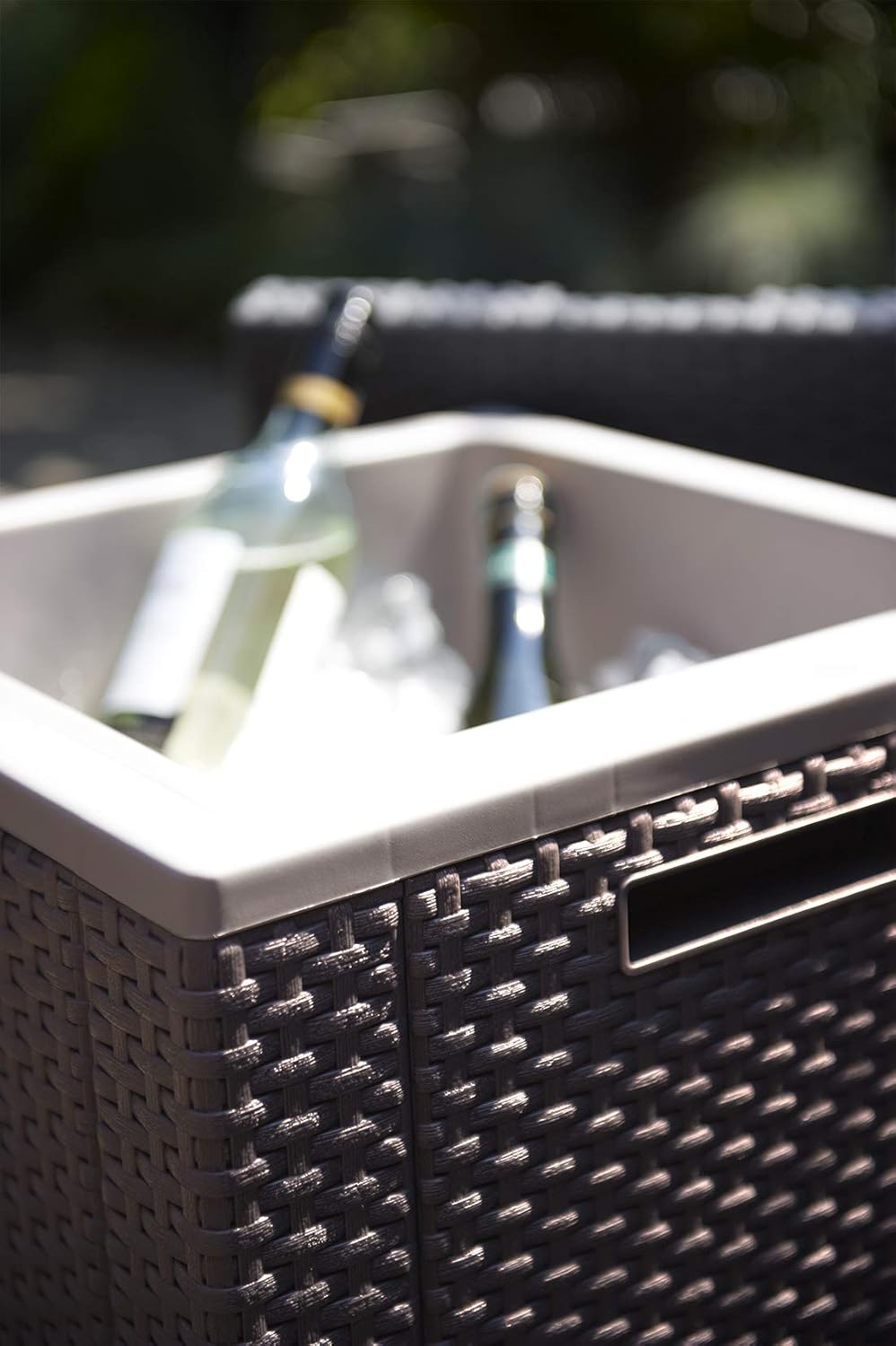 - Tragbar: Dank seiner leichten Bauweise und den Handgriffen einfach zu transportieren;Vielseitig einsetzbar: Verwendung als Couchtisch auf der Terrasse, Bartisch und Getränkekühler;Extra Sitzfläche: Bietet bequeme Sitzbank mit einer Tragkraft von 113