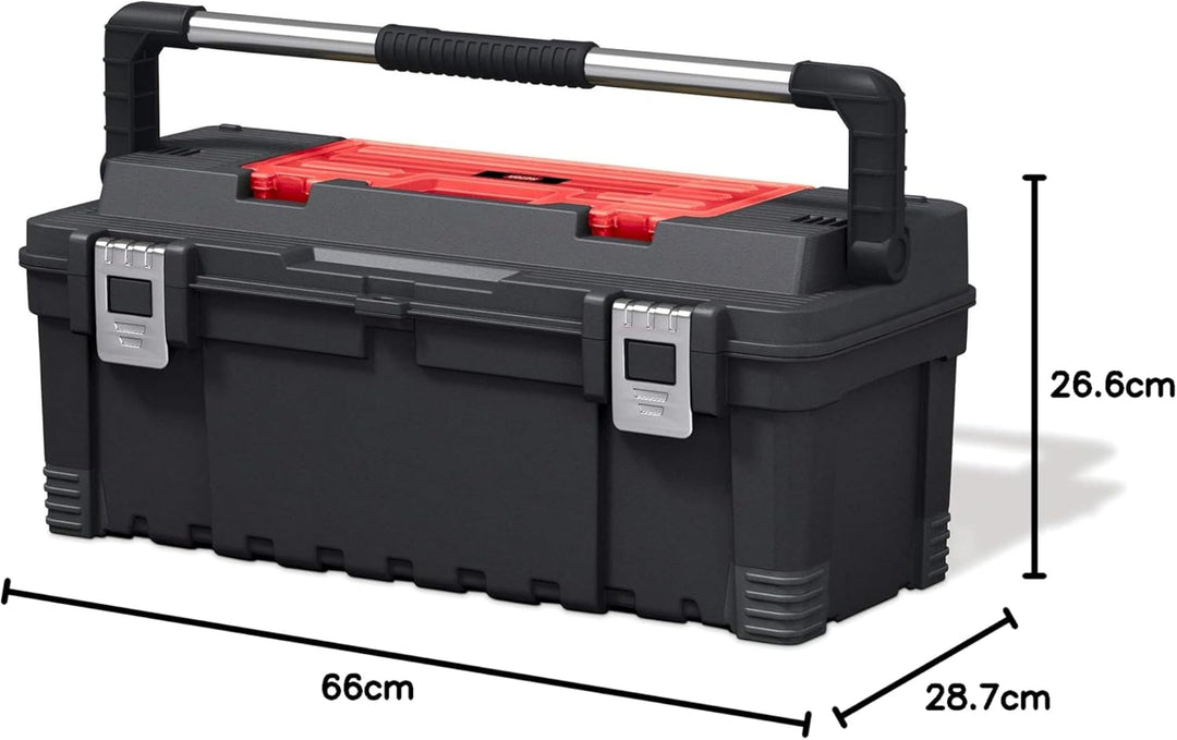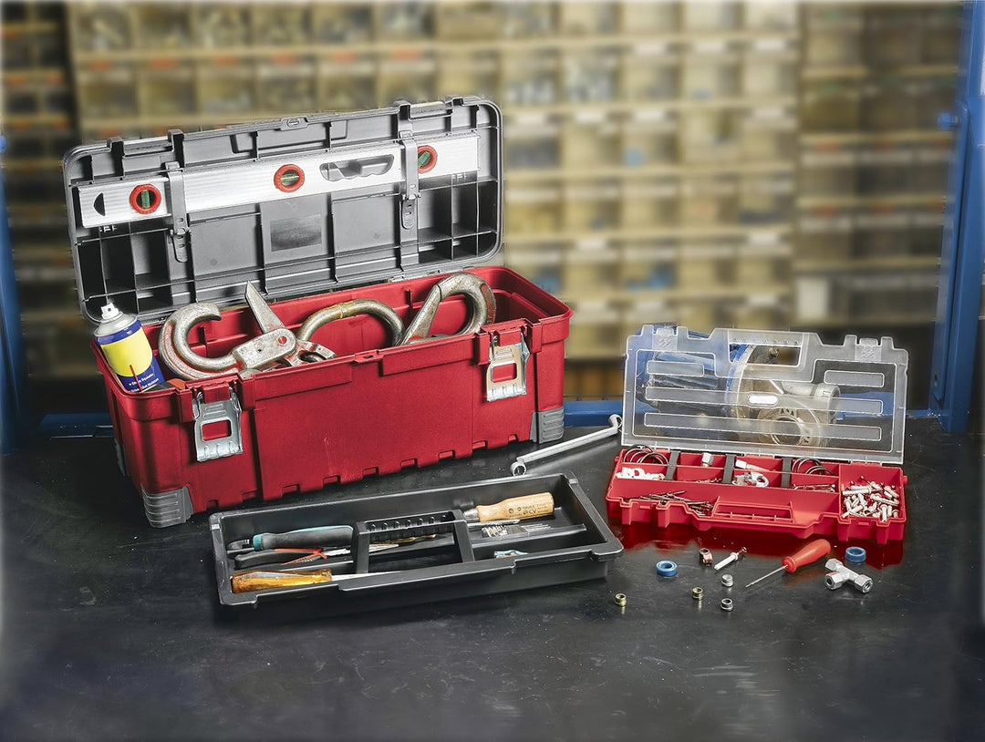 - stabile Werkzeugbox und Organizer in Einem mit Metallgriff und Metallverschlüssen