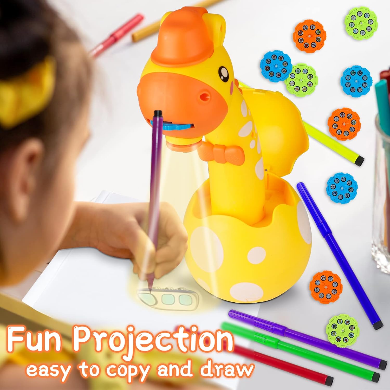 - 【Smart Projection Art Drawing Toy】 Der Art Drawing Projector ist für Kinder super einfach zu bedienen! schalten Sie einfach das Licht aus, schalten Sie den Projektor ein und legen Sie ein vorgedrucktes Dia ein, und der Projektor kann ein Muster