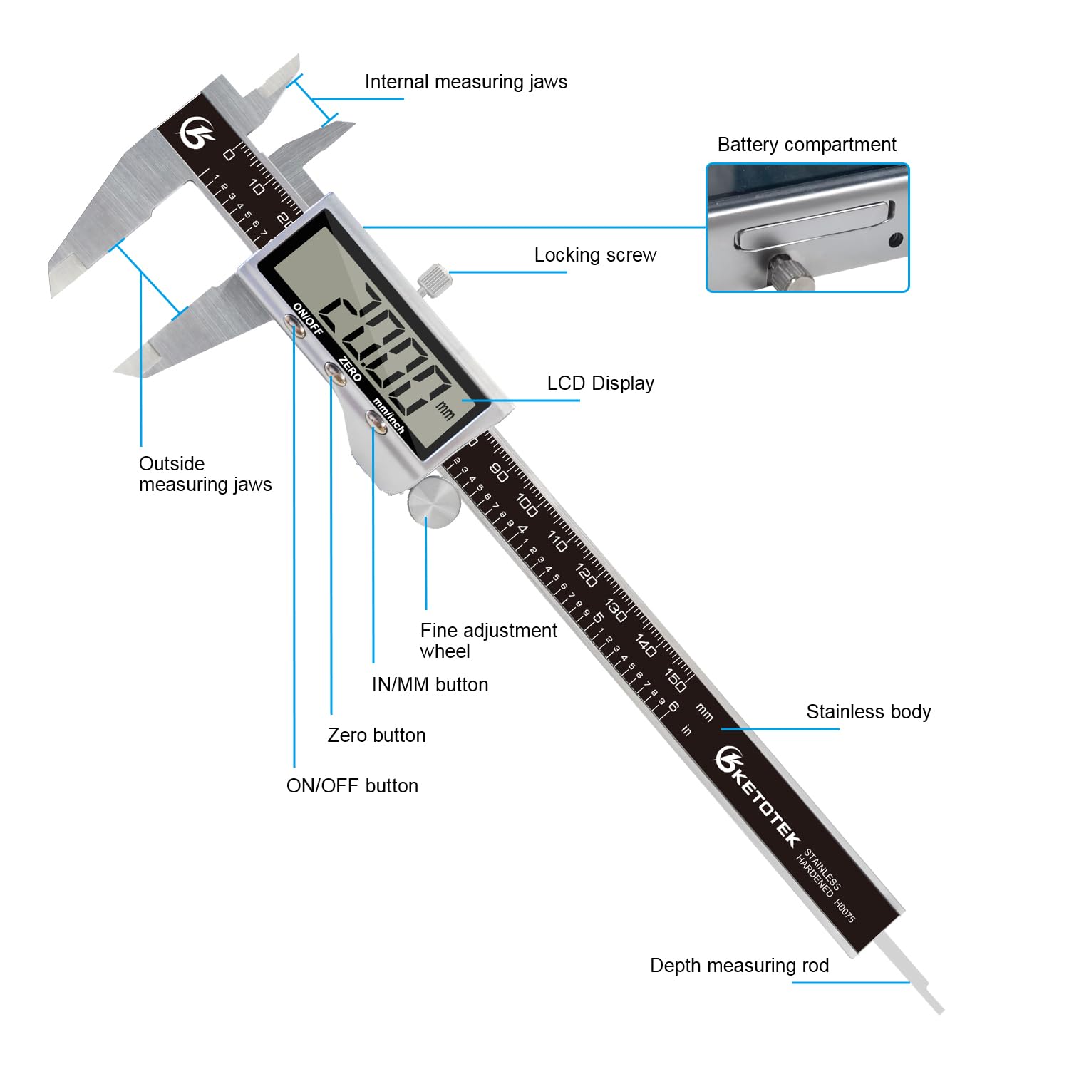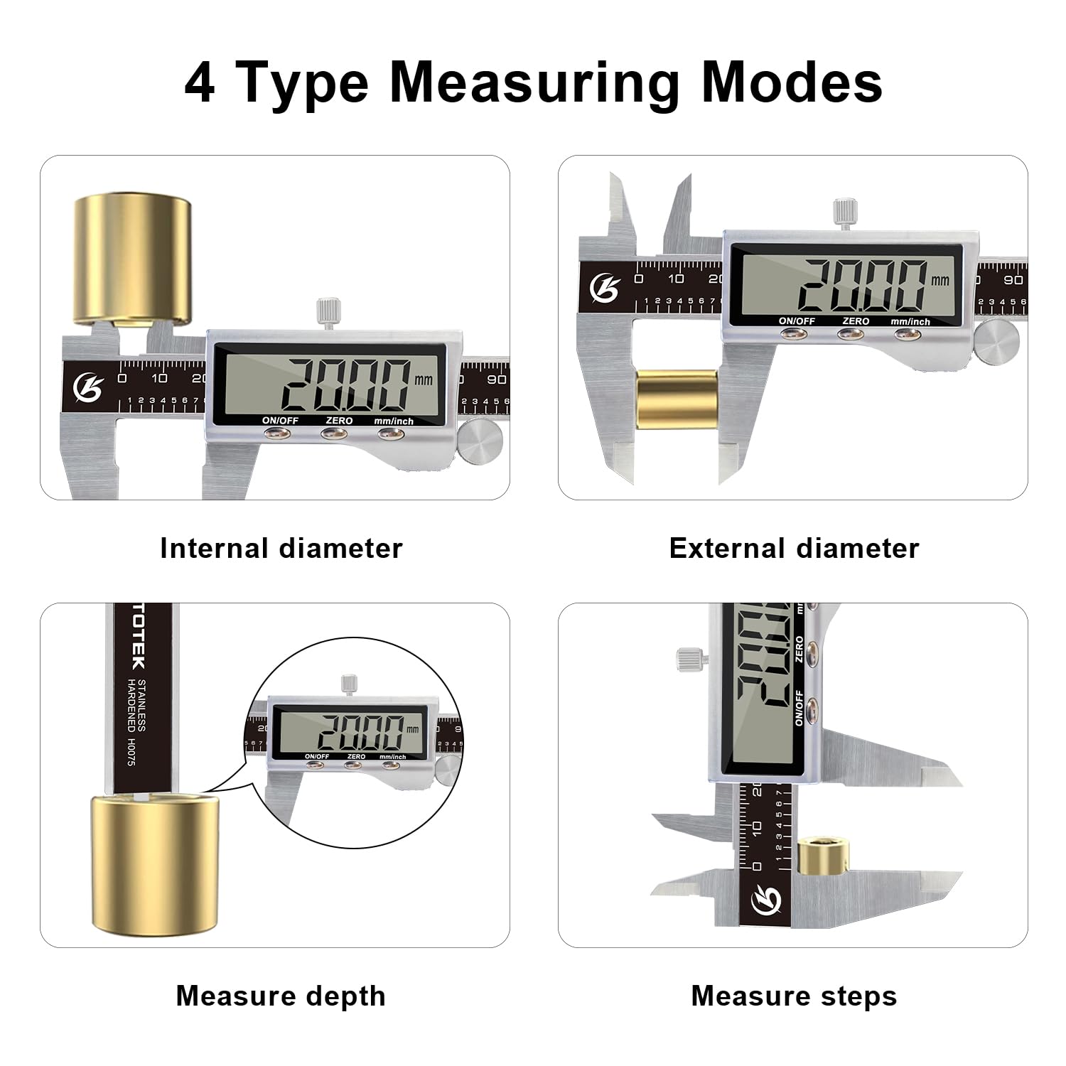 - ⑤ 【Breite Anwendungen】 Der Messschieber ist einfach und bequem zu verpacken und zu transportieren. Es wird häufig in Industrie-, Haushalts- und Büromessungen verwendet und ist auch für Heimwerker ein gutes und genaues Messwerkzeug.