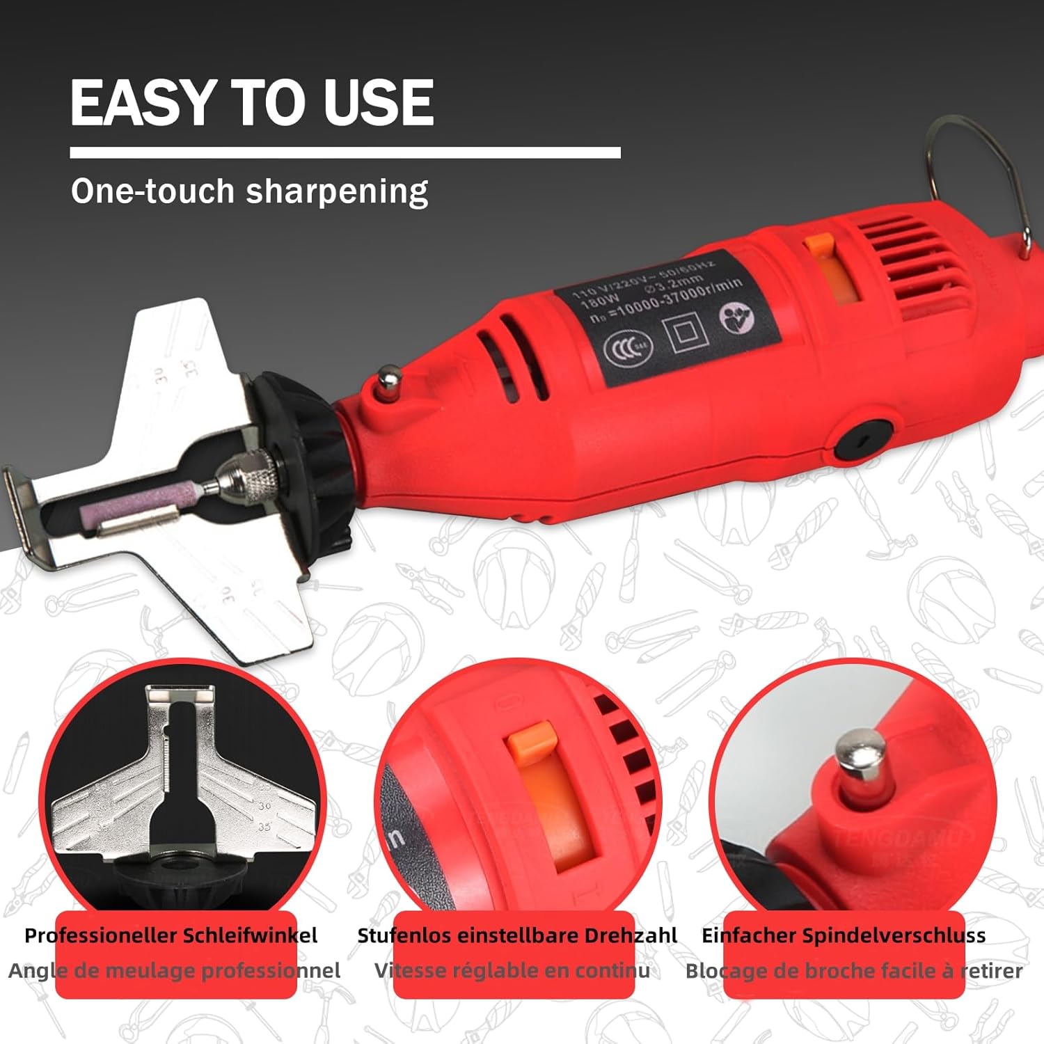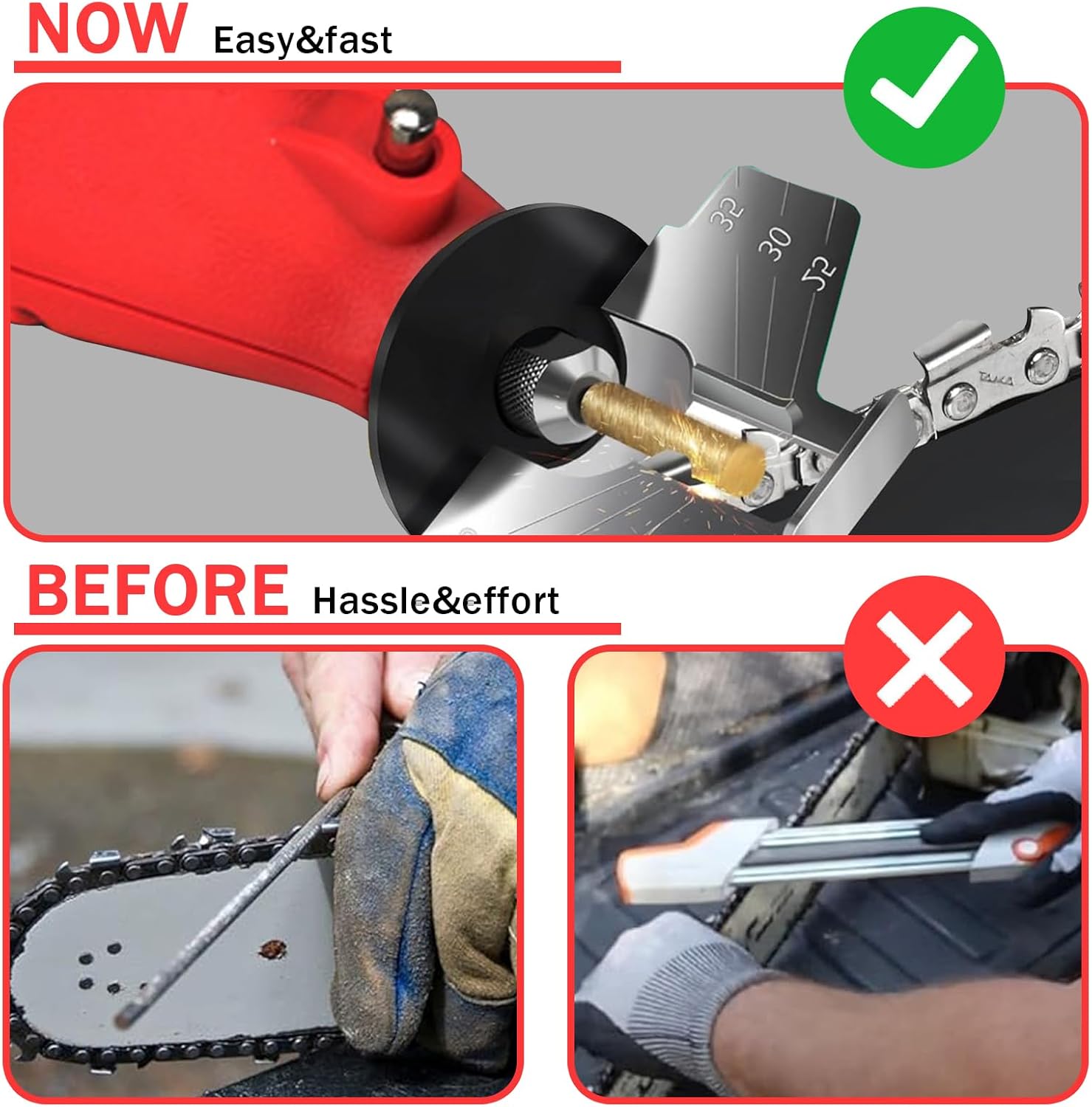 - ✨ Effizientes und präzises Schärfen】 Ausgestattet mit einem verstellbaren professionellen Schleifwinkel und stufenloser Geschwindigkeitsregelung, ermöglicht es das schnelle, saubere und präzise Schärfen von Ketten, was die Schneidleistung und