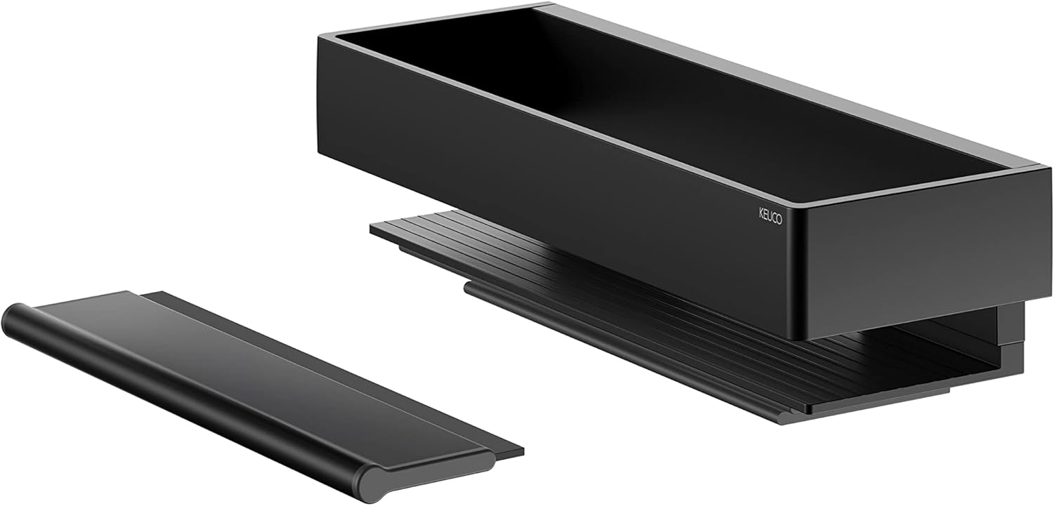 Keuco Duschkorb aus Metall, schwarz-matt, inkl. Glas-Wischer, 9,5x30x8,2cm, Duschablage mit Glasabzi
